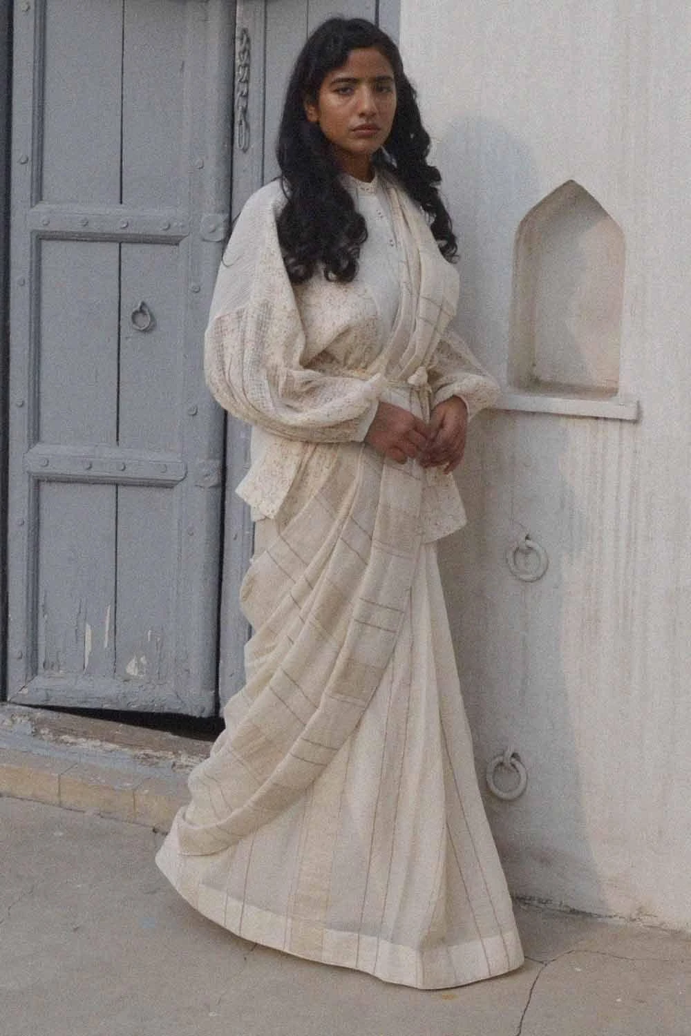 Deeply rooted in the culture of India, Sari delineates elegance and grace. Crafted in woven striped cotton, finished with printed Kora cotton, this six yards of elegance definitely makes a staple piece for your closet.