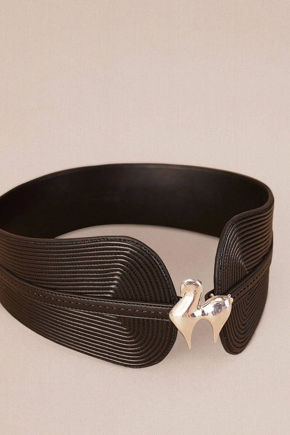 Indulge in sophistication with AMPM’s faux leather masterpiece belt. Featuring a horse buckle and intricate corded embroidery, it’s a black beauty exuding elegance and timeless style