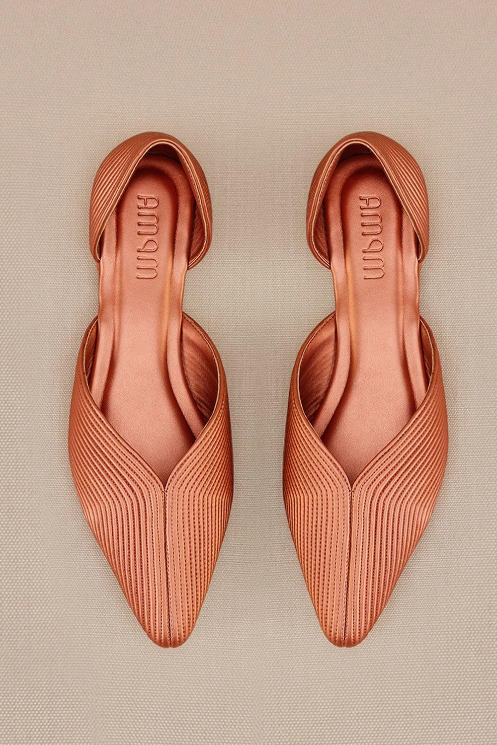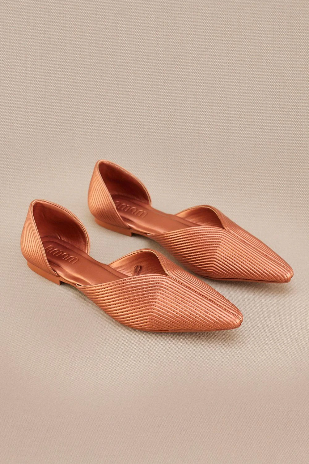 Step into glamour with these metallic copper point-toe flats. Crafted in faux leather, adorned with intricate cord embroidery, these flats redefine elegance for your every stride.