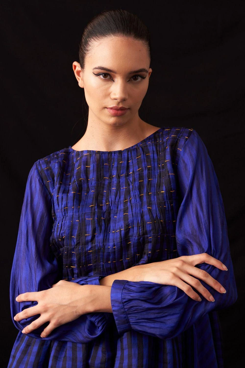 Indulge in exquisite craftsmanship with this hand-woven silk textured yoke dress adorned with intricate hand-embroidery. Elevate your style effortlessly.