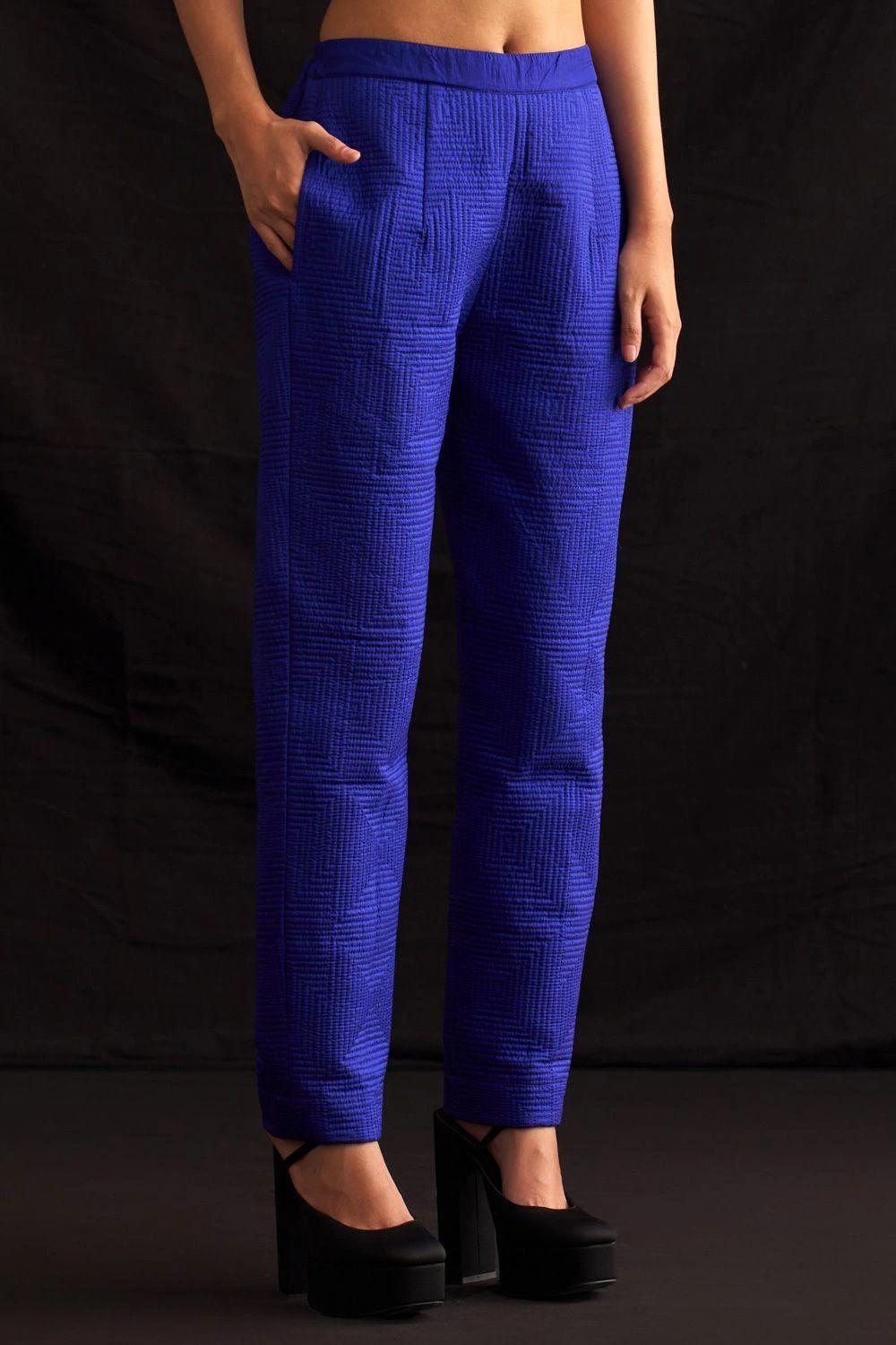 Indulge in the luxurious comfort and style of these woven silk quilted wide-leg trousers. Pair them with a coordinating top from the collection to complete the set.