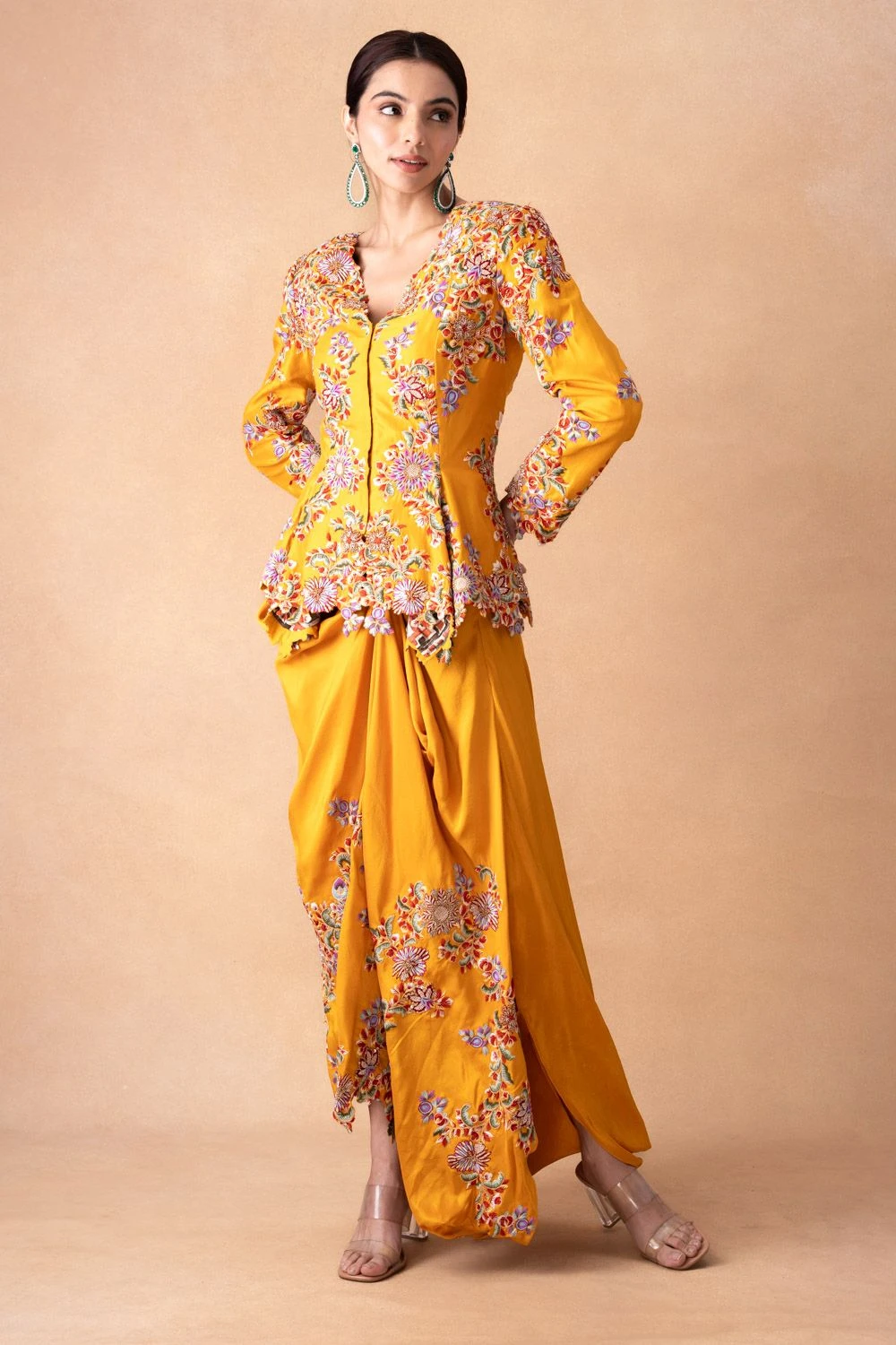No Of Components : 2 (Jacket Top + Drape Skirt)