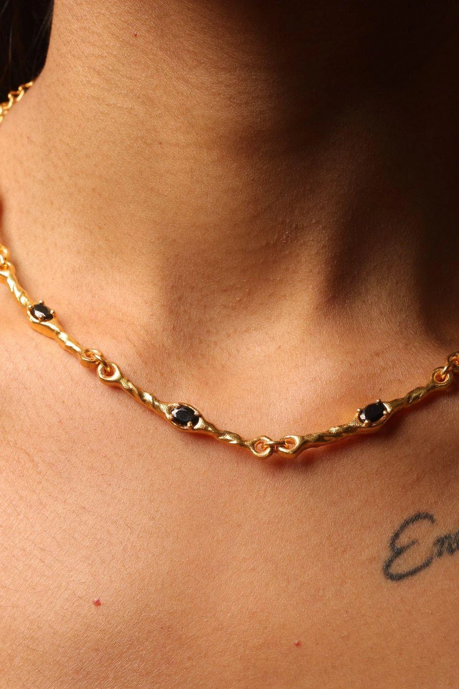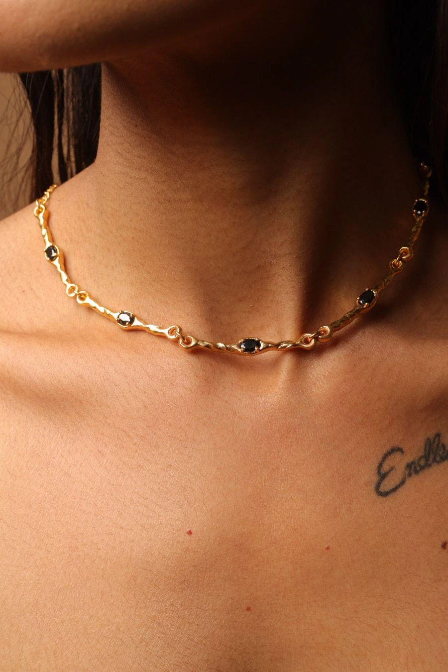 Lending an archaic touch, the epiphany choker gives a vintage touch to your attire. The American diamonds are carefully handset in a prong setting. They can be stacked or worn individually.