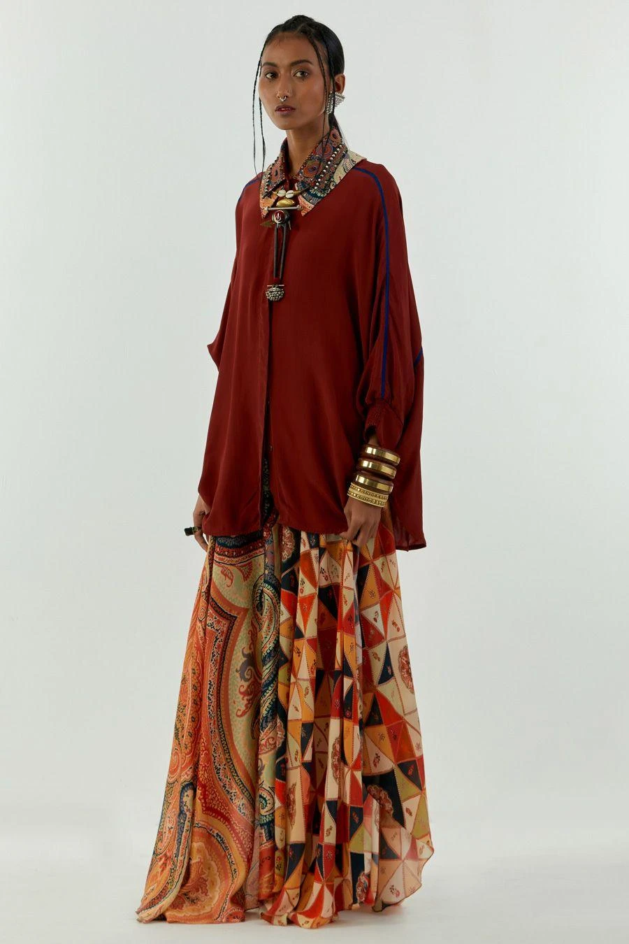 Maximise the life of your wardrobe with this exquisite shirt. Crafted in natural crepe, this mandala shirt features an embellished collar. Pair it with coordinating trousers from the collection to complete the set.