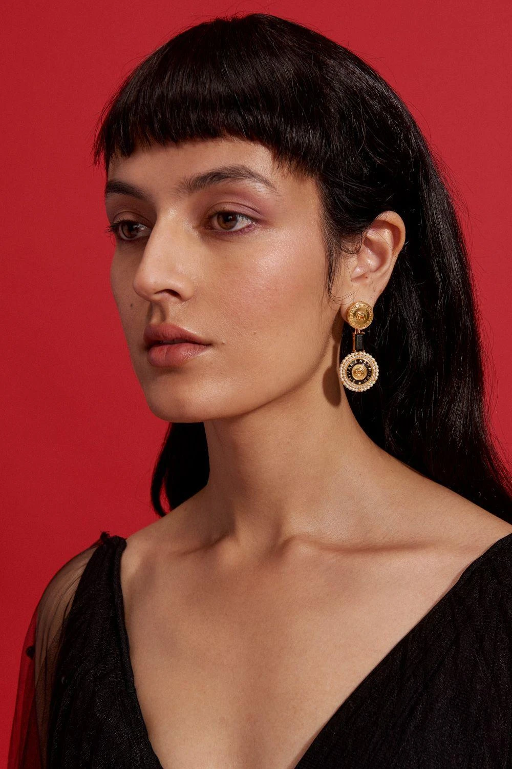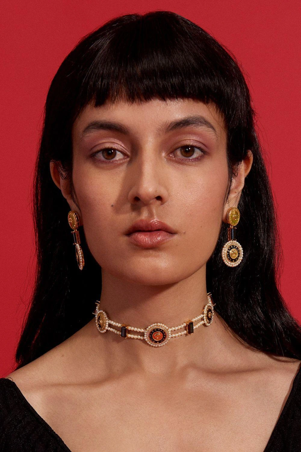 This statement pair of dual coin earrings are made with sparkling Morning Star and Pastel Plum stones coupled with enamel work. A perfect piece of accessory for both day and evening occasions.