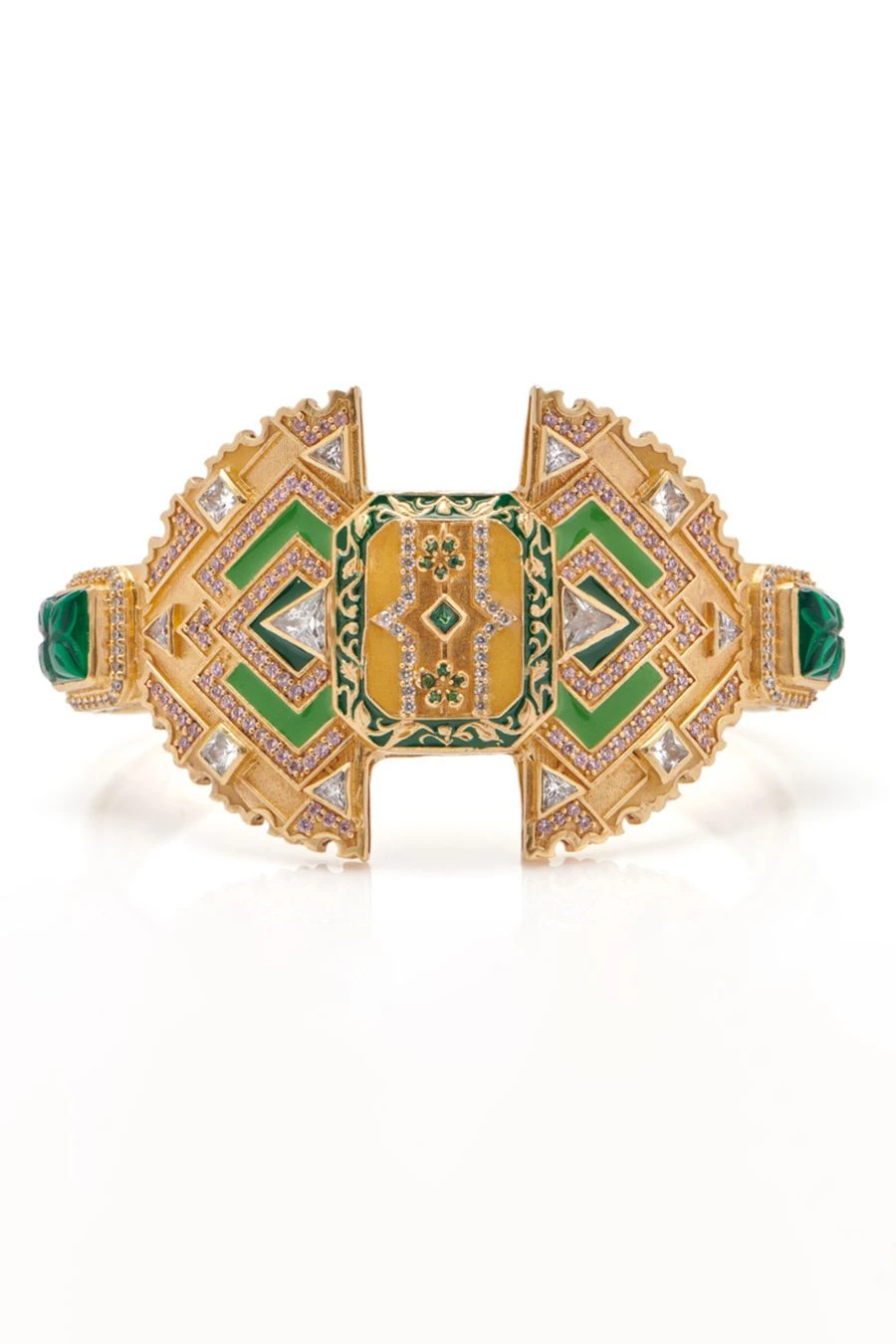 The stunning Azura ring showcases over 14 carats of handpicked stones in a breathtaking Art Deco-inspired design. The intricate chevron pattern adds a touch of modern elegance to the classic motif, while the hidden clasp ensures comfort and security.