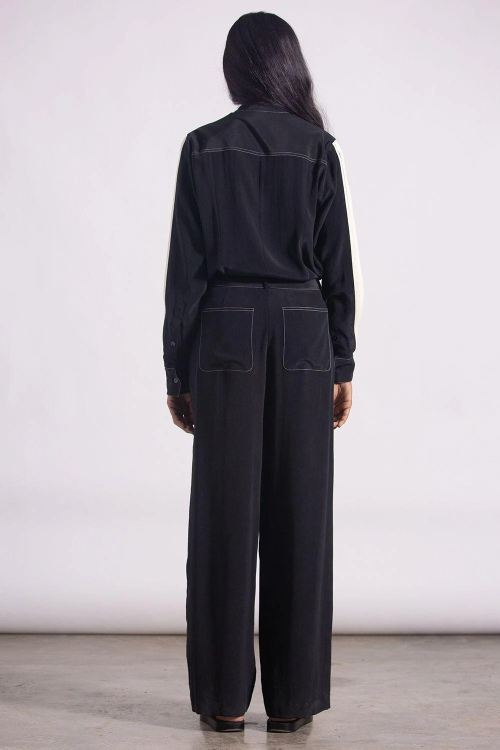 Cinched at waist with a detachable belt, this round neck button down jumpsuit is ultra chic and elegant! Wear with a knot bun and metallic sculptured earrings for a formal dinner.