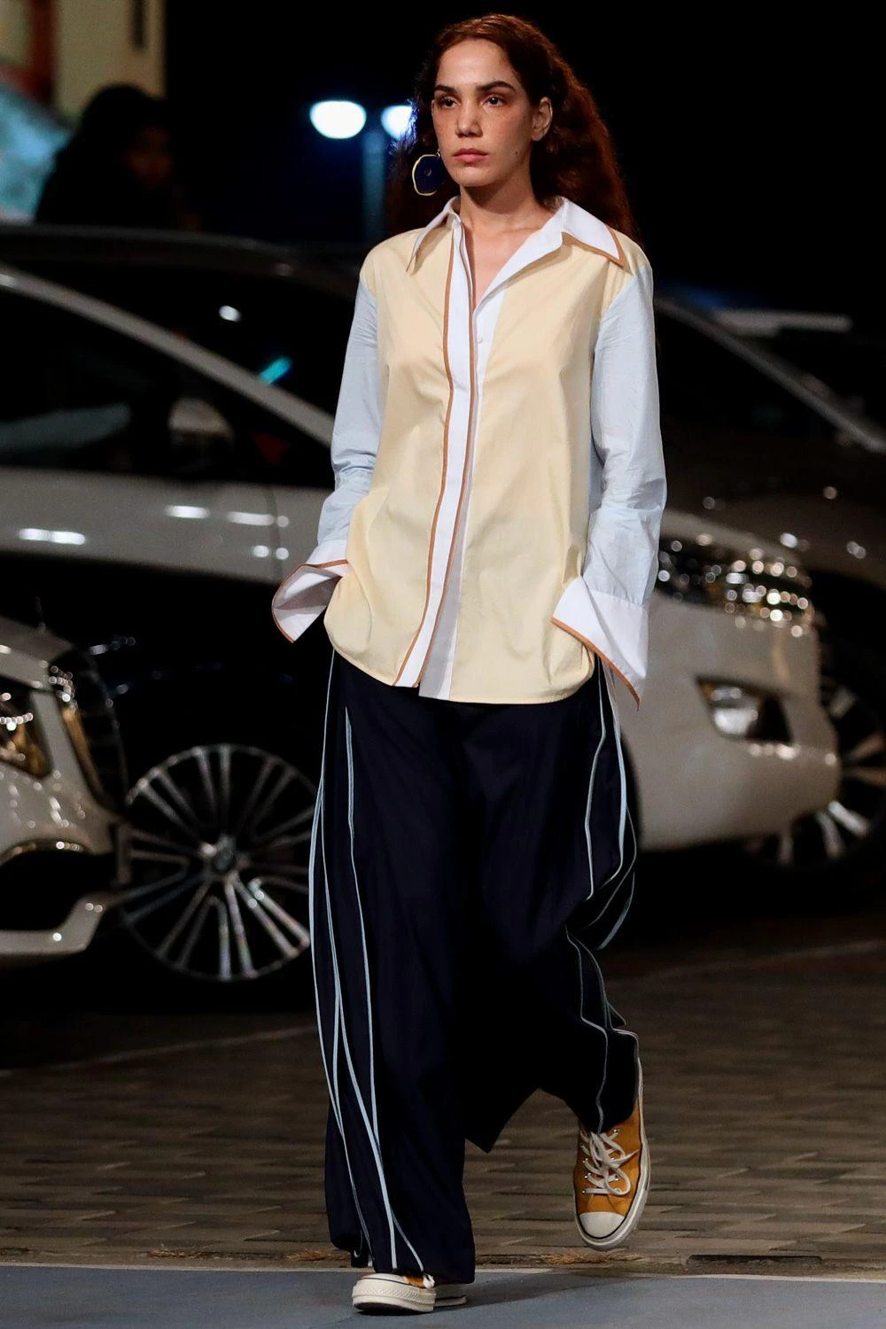 This pair of classic black pants has been given a playful twist with clever binding details on both sides. These wide leg pants are tailored in fine fabric. You can style it with a cropped top from Bodice for an effortlessly stylish look.