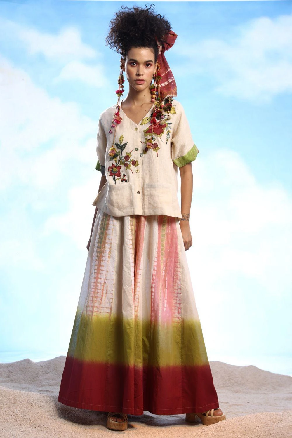 Indulge in the bohemian allure of this Tie Dye Stole. Crafted with exquisite detail, it features mesmerizing tie dye patterns, intricate crochet beading, and playful tassel accents.