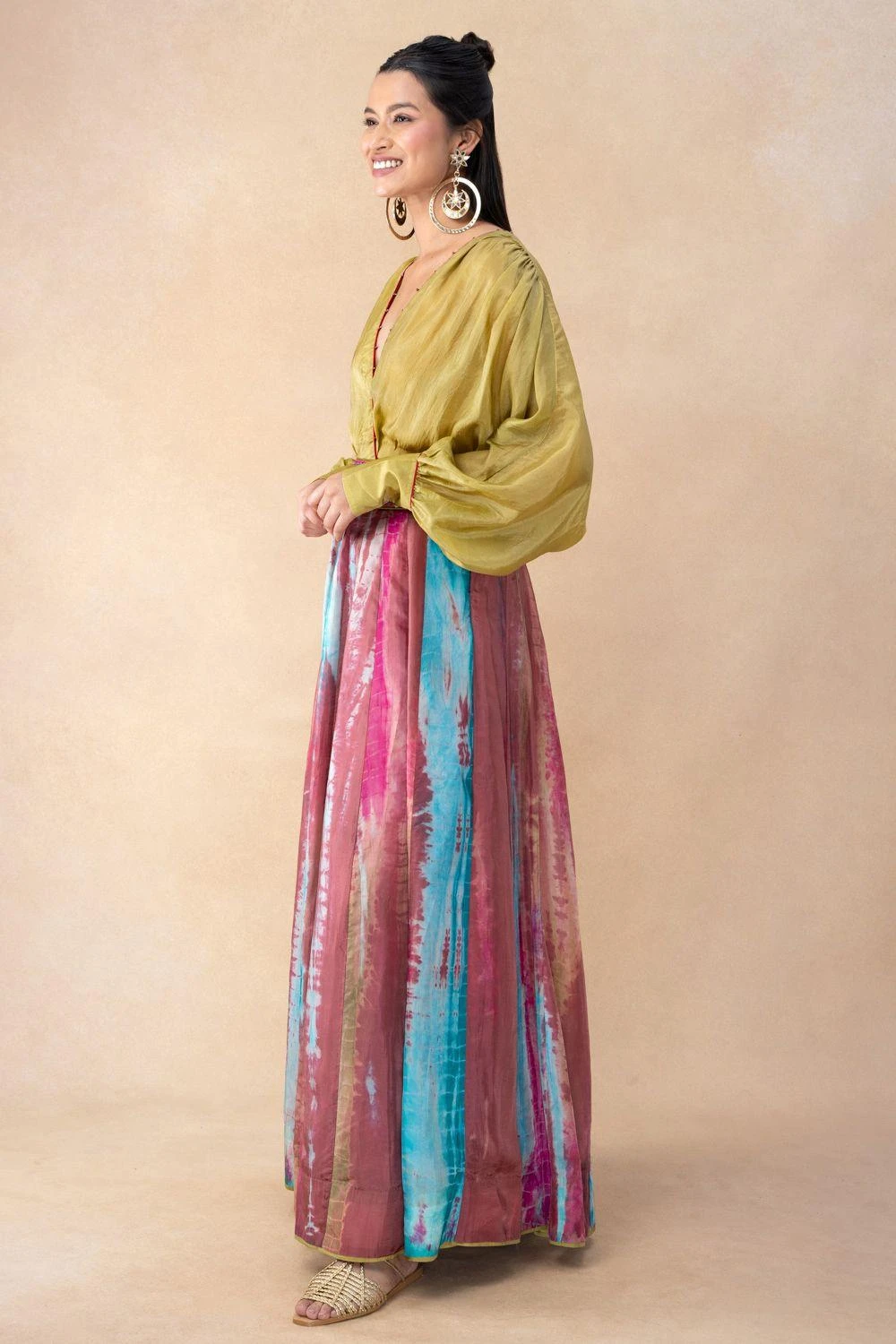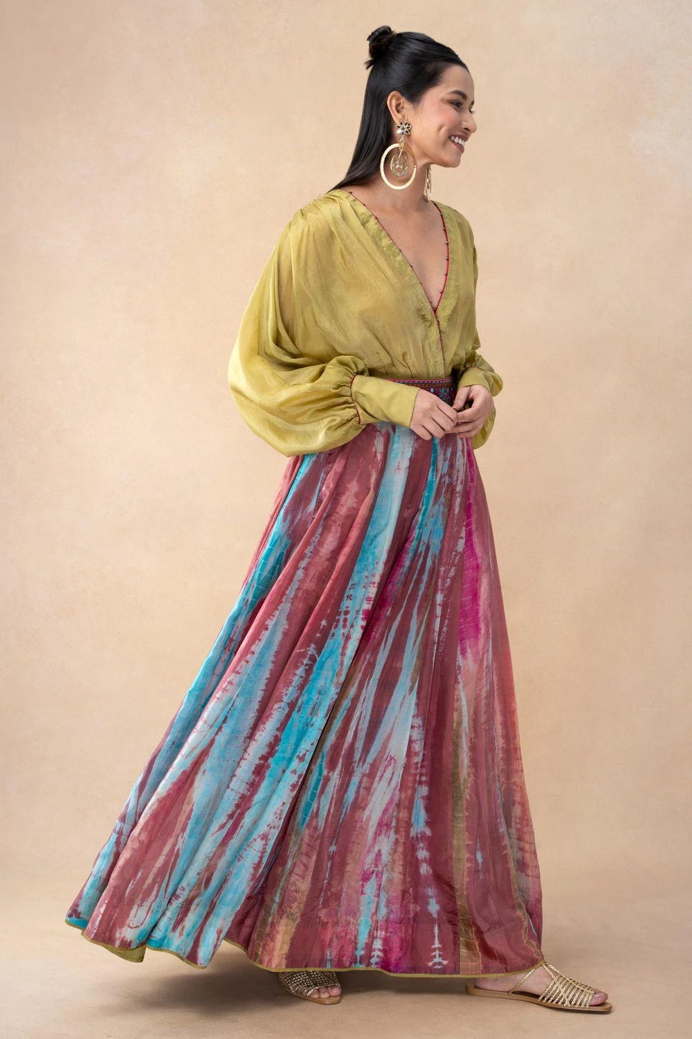 Elevate your wardrobe with this overlap loose fit shirt paired flawlessly with an embellished belt panel skirt. This ensemble blends comfort and style, creating a harmonious fusion of modernity and sophistication.