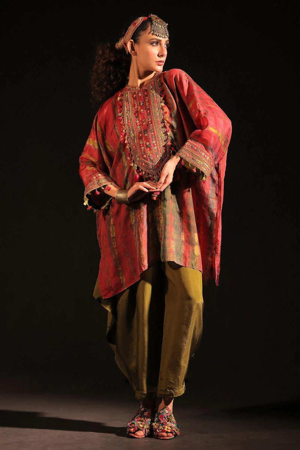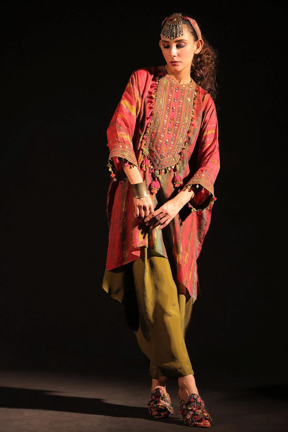 Elevate your style with this embellished band collar kaftan set. This ensemble seamlessly blends fashion and comfort, offering a chic and coordinated look that’s perfect for various occasions.