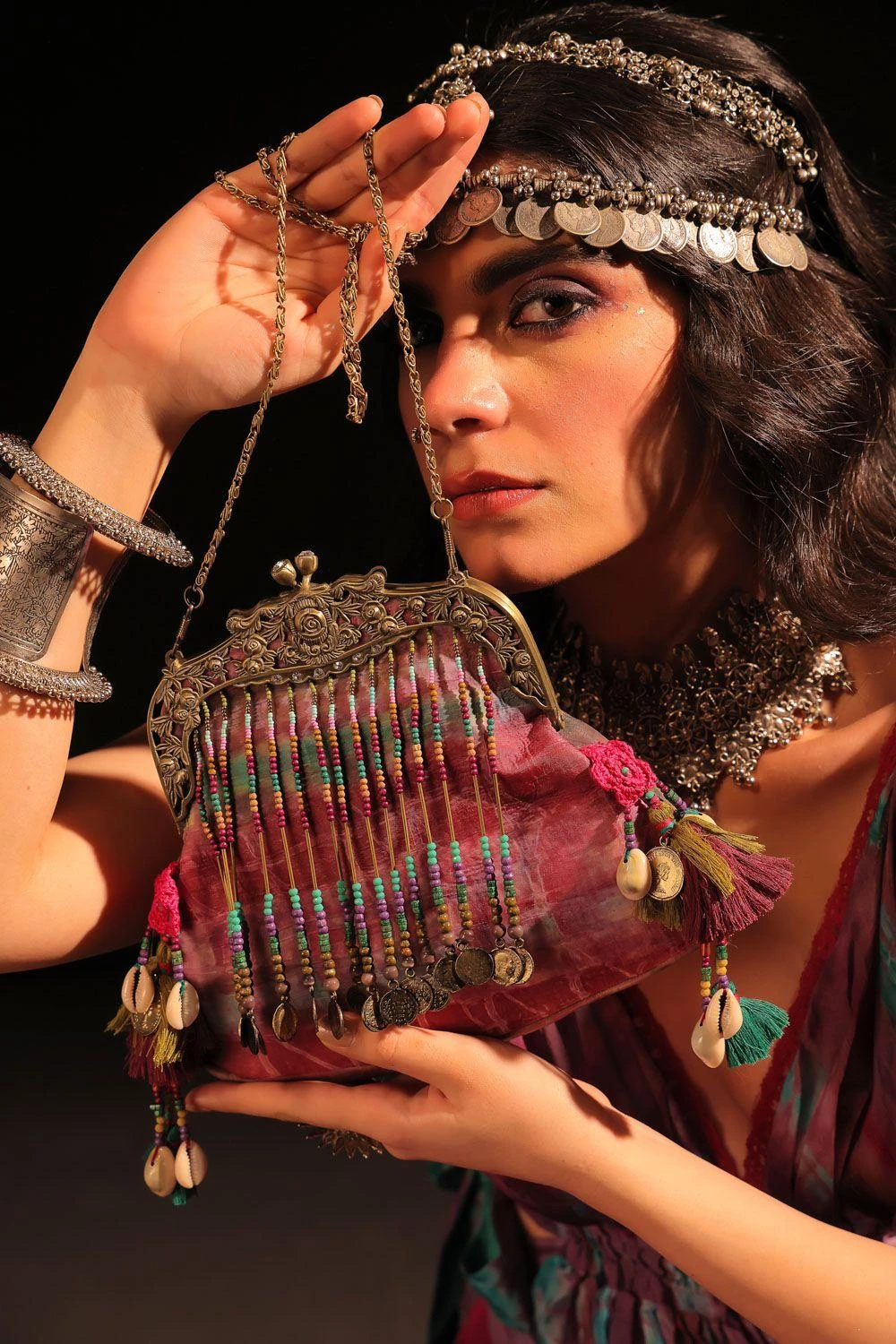 Elevate your style with this Antique Tie-Dye Clutch featuring exquisite tassel details. This clutch is a harmonious blend of timeless charm and modern design, adding a touch of opulence to your look.