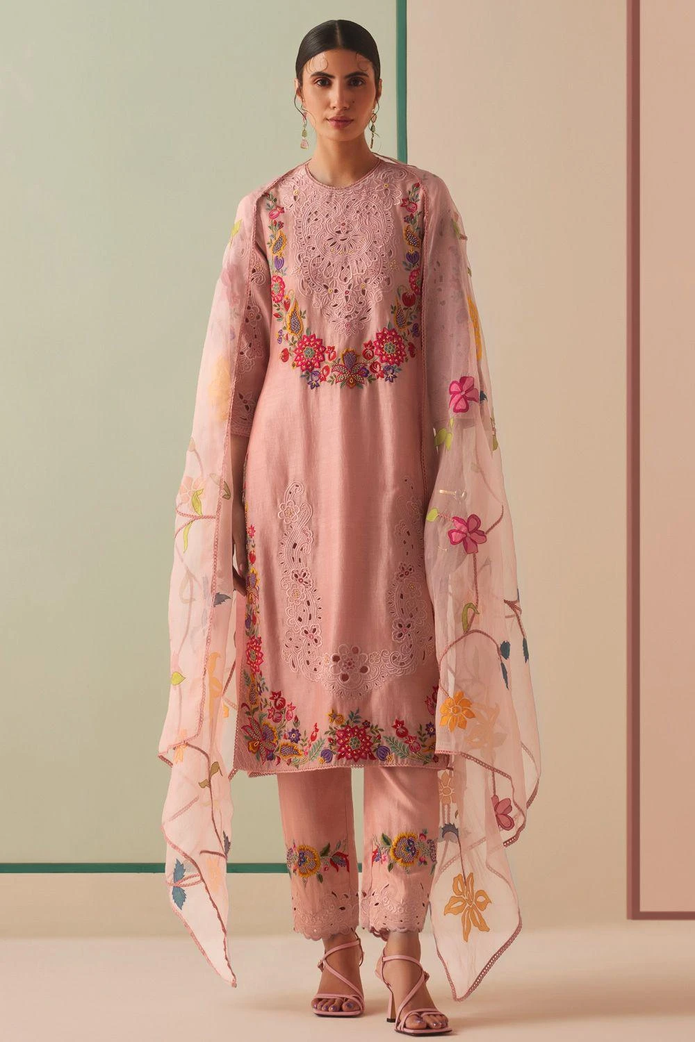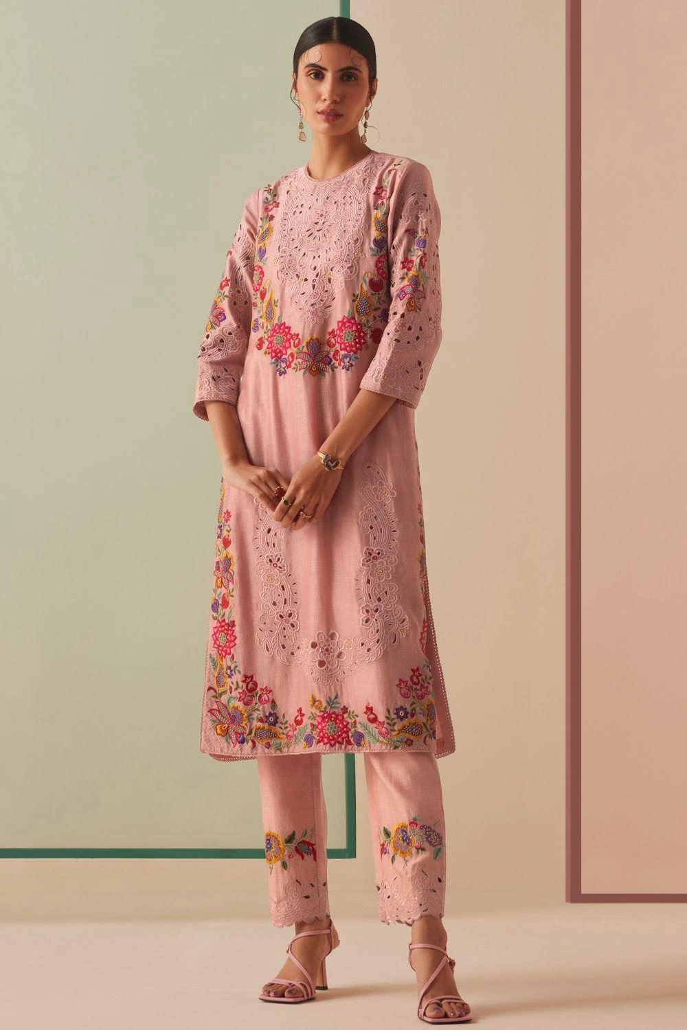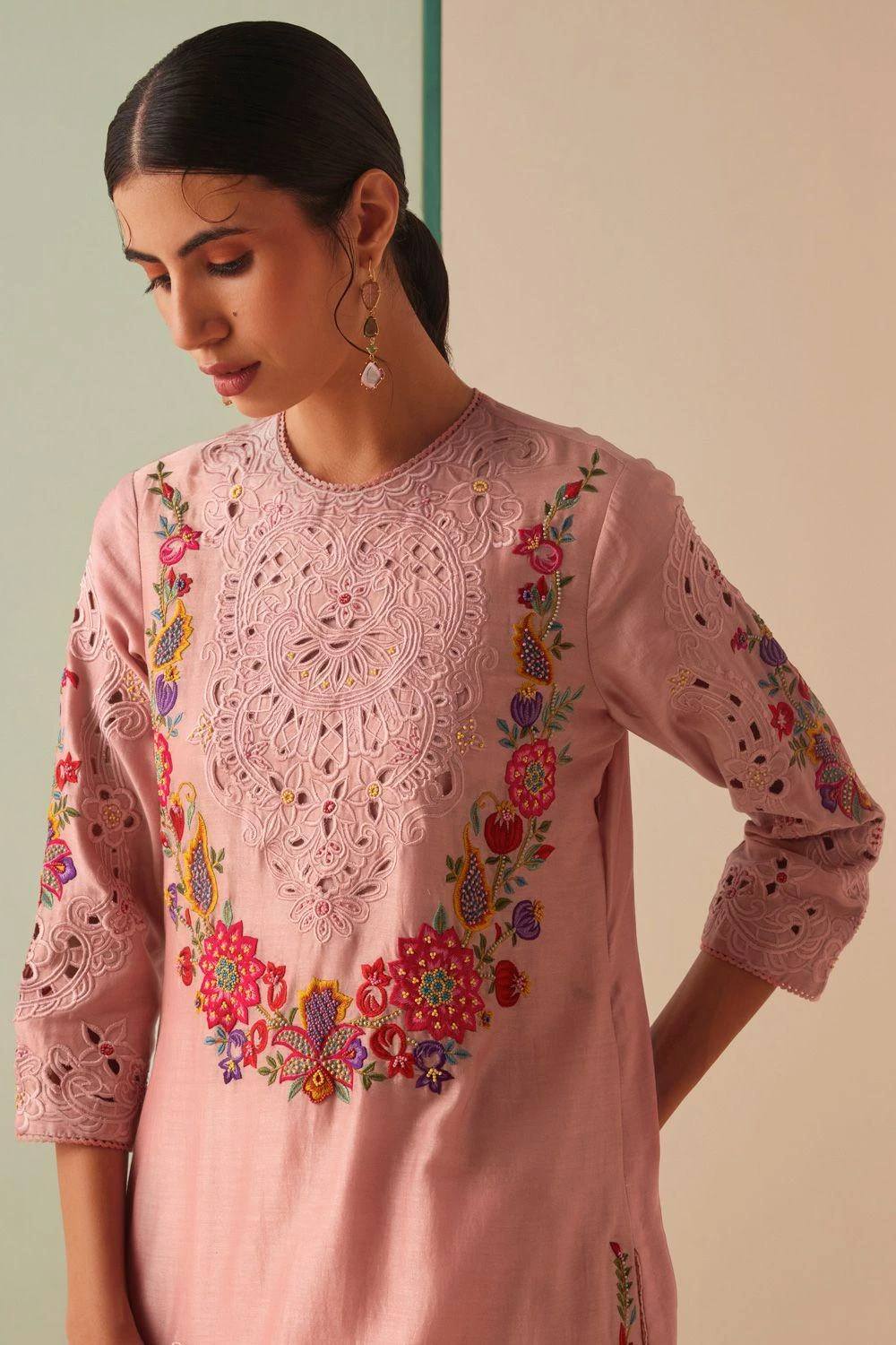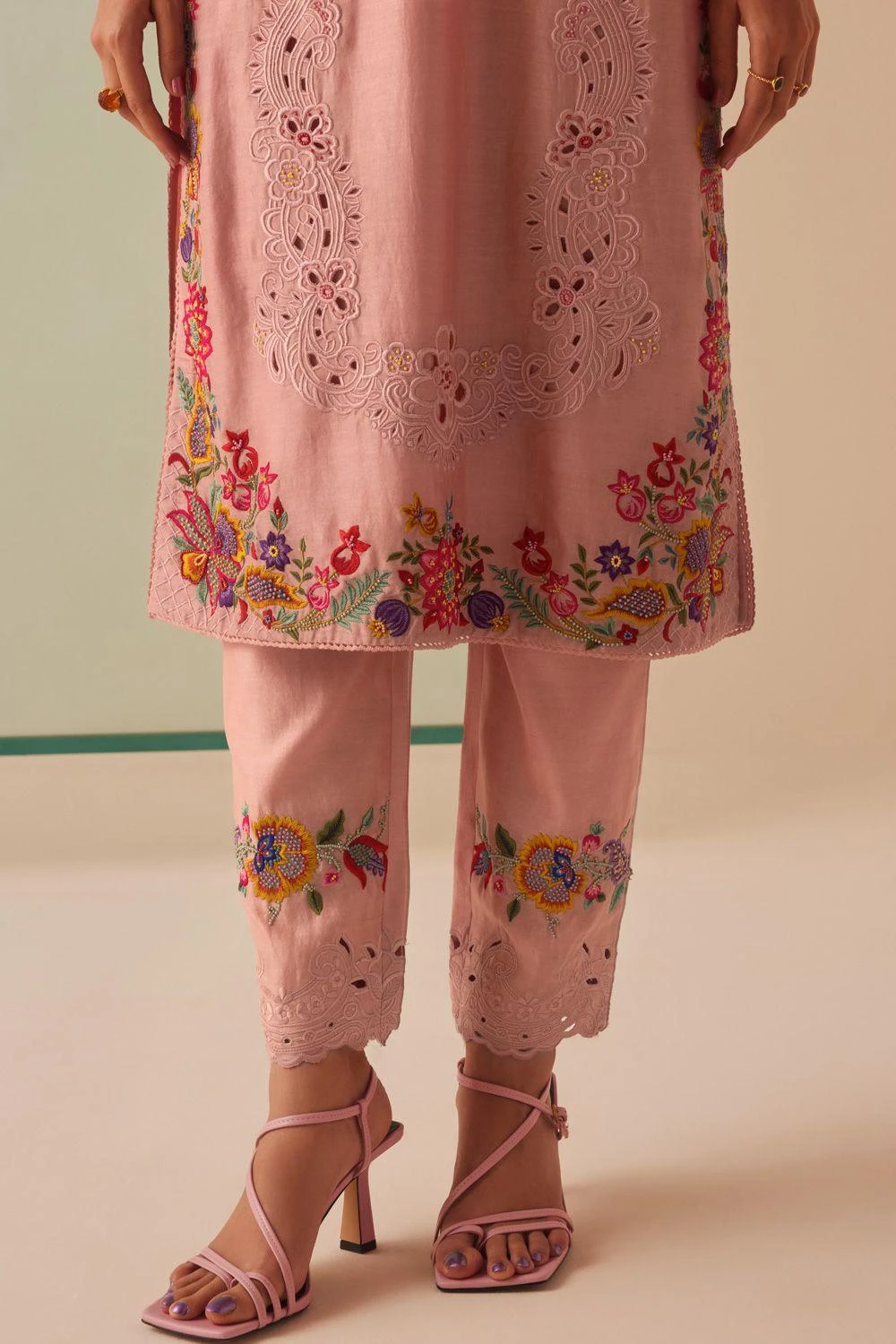 Experience the essence of elegance with this kurta. Impeccably adorned with floral embroidery & intricate cutwork, this piece redefines opulence. Pair it with coordinating pants & dupatta from the collection to complete the set,
