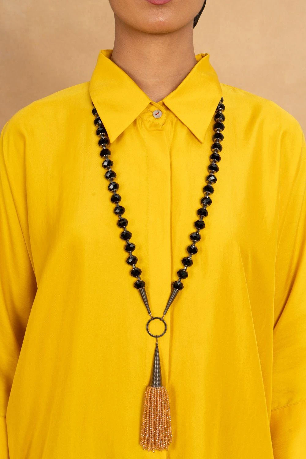 The geometric play of contrasting materials like metals & silks on the necklace is something you don’t want to miss. As an expression of modern simplicity, this style combines contemporary European design & traditional Indian craftsmanship.