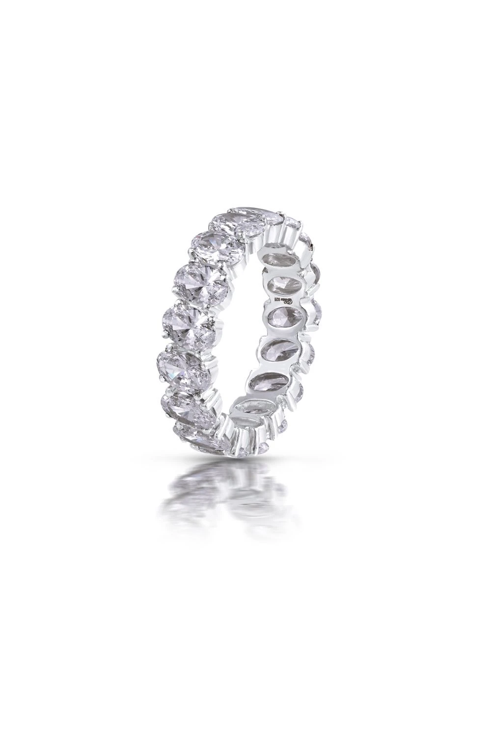 Finish your looks with this delicate & dainty eternity band ring. It is beautifully handcrafted in 92.5 sterling silver and punctuated with white Swarovski zirconia. You can wear it as an everyday accessory.