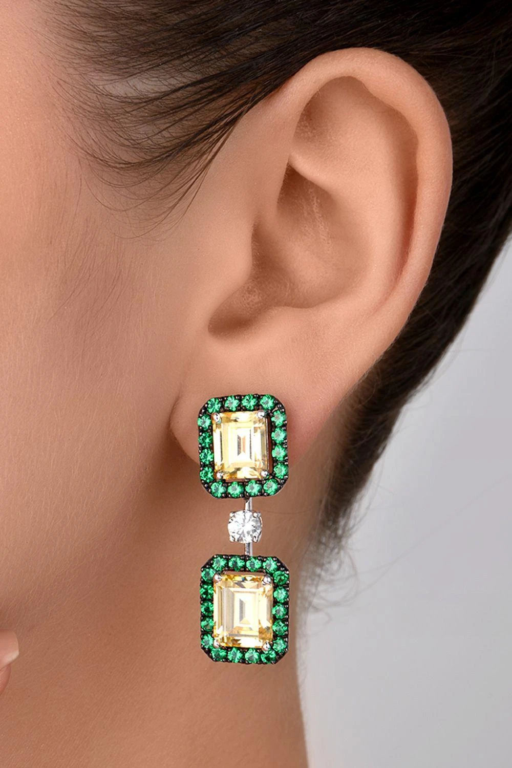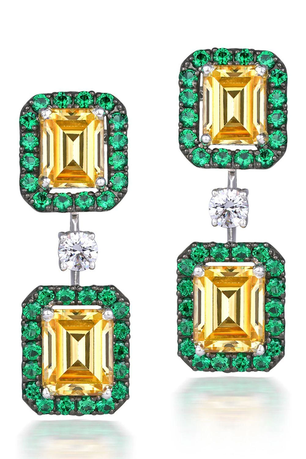 Emanate opulence with these Cocktail Earrings featuring White & Yellow Swarovski Zirconia, complemented by Man-Made Emeralds.