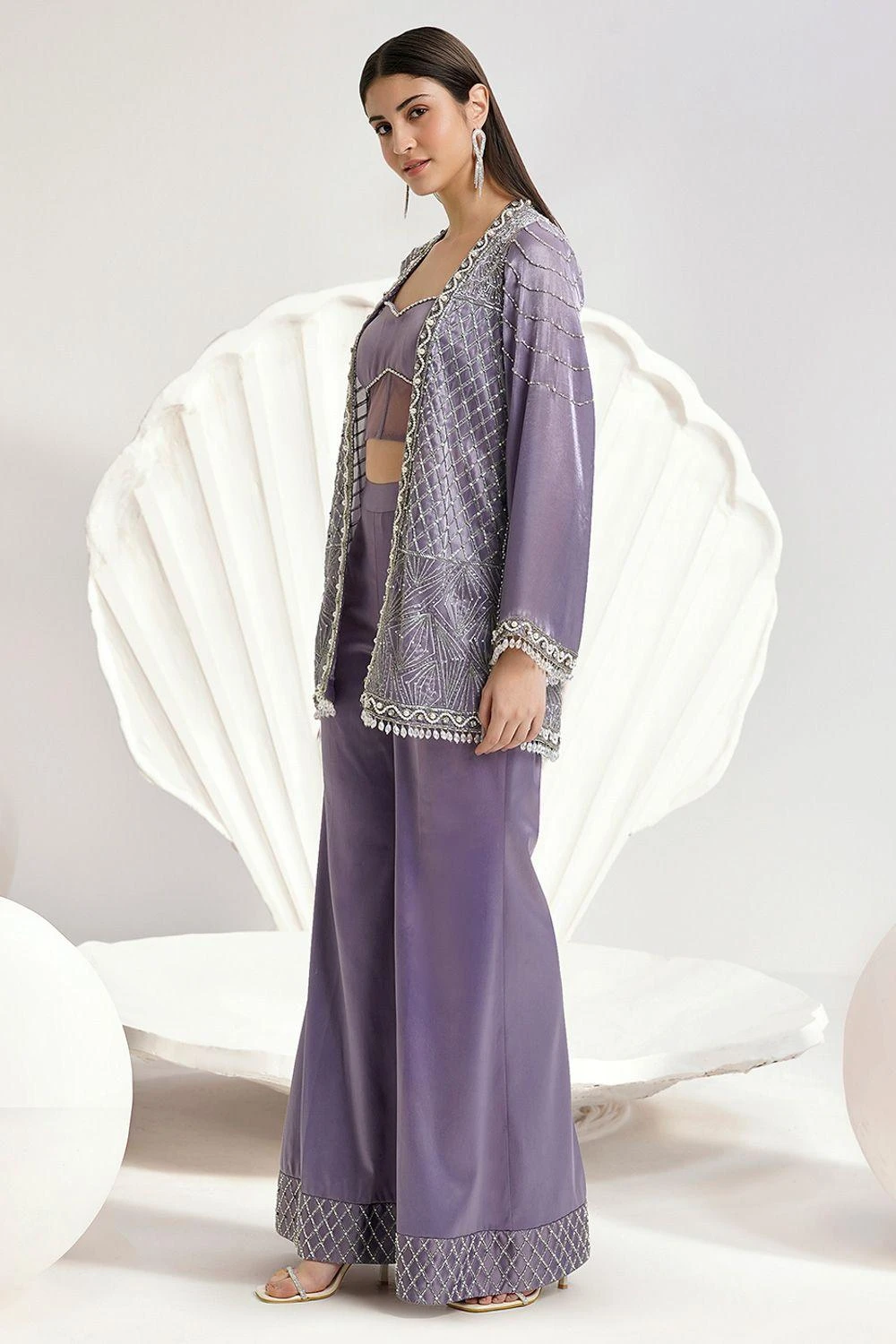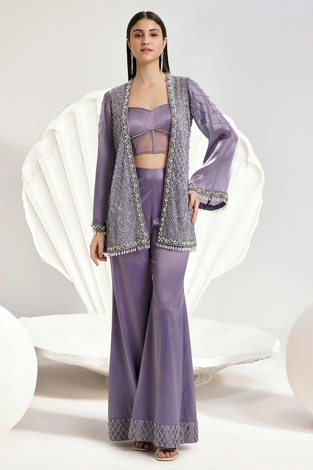 Indulge in the Verona Jacket Setùa symphony of textiles, embellishments & craftsmanship. A Corset top, wide-leg trousers & an embellished jacket create an ensemble that narrates tales of opulence. Embrace the allure of sophistication & artistry.