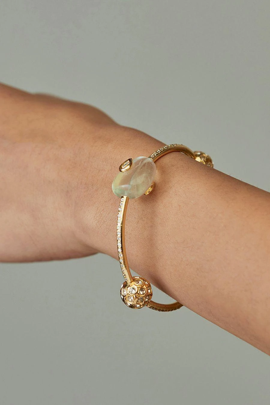 This scene-stealing bracelet is an instant pick-me-up to any look. Crafted in copper, this statement Swarovski bangle with kundan beads has a distinct look that instantly spruces up your outfit.