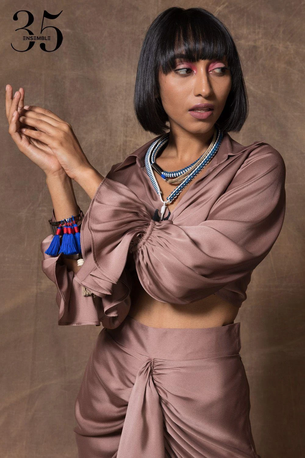 Elevate your understated looks with this statement necklace. It is curated in blue and silver threads and strung to an eclectic stainless steel pendant. You can team it up with a monochrome tunic or dress.
