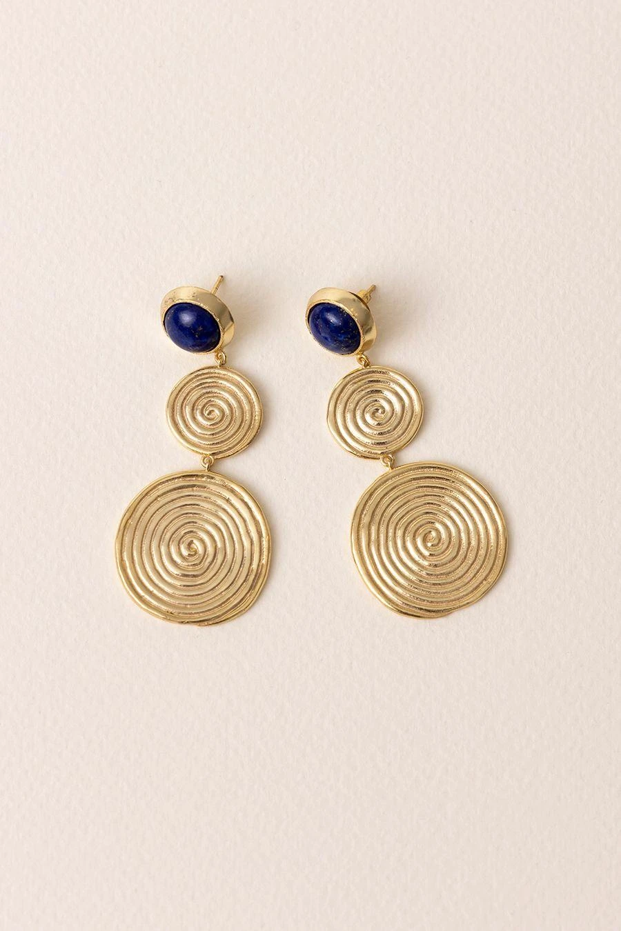 The Nazca Earrings are inspired by the ancient geoglyphs of Peru and named after the mysterious Nazca Lines. The addition of Lapis Lazuli, a symbol of intuition, wisdom & truth, makes these earrings a true statement of sophistication and style.