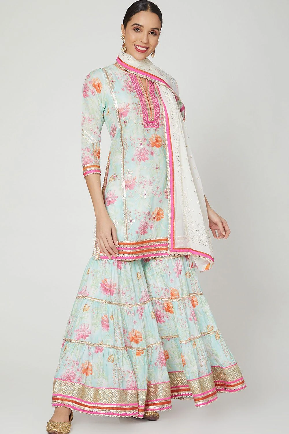 Material/Fabric : Kurta – cotton silk sharara – cotton silk dupatta – chiffon