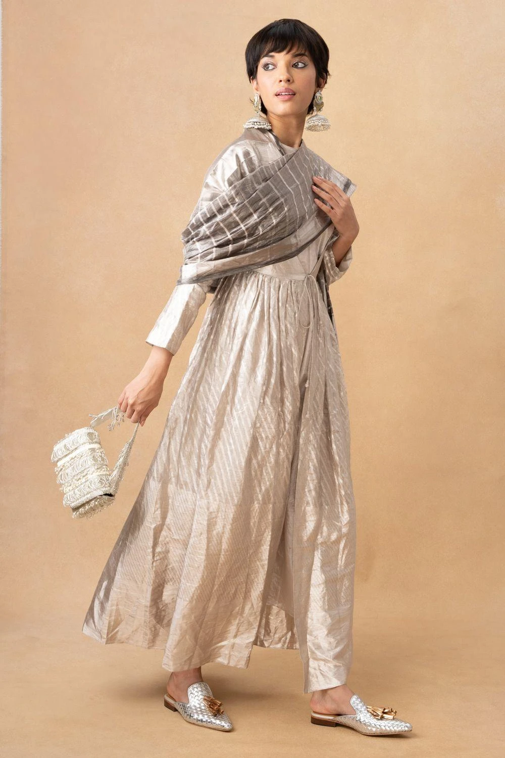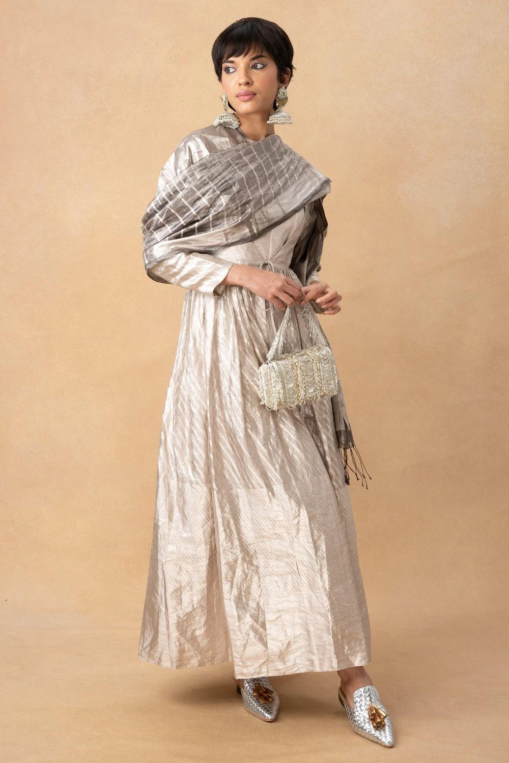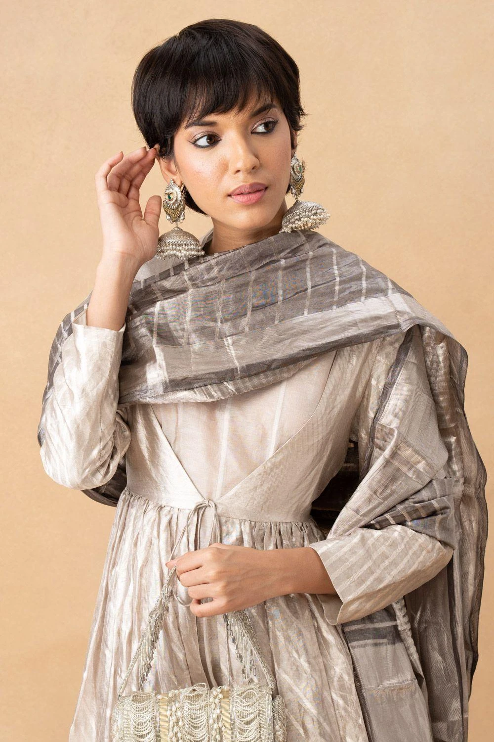 This black & silver dupatta is a perfect add on to an understated look. It radiates a natural sheen which helps to glow up the look. The pink brocade border accentuates the look.