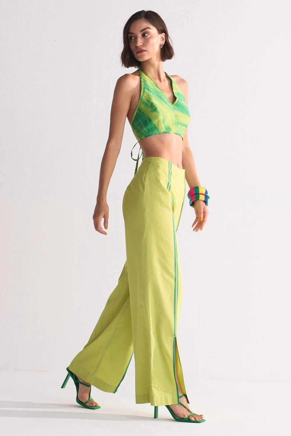 Indulge in comfort and style with these elasticated slit applique straight pants, a chic addition to your wardrobe. Effortlessly versatile, these pants elevate your look with a touch of understated elegance.