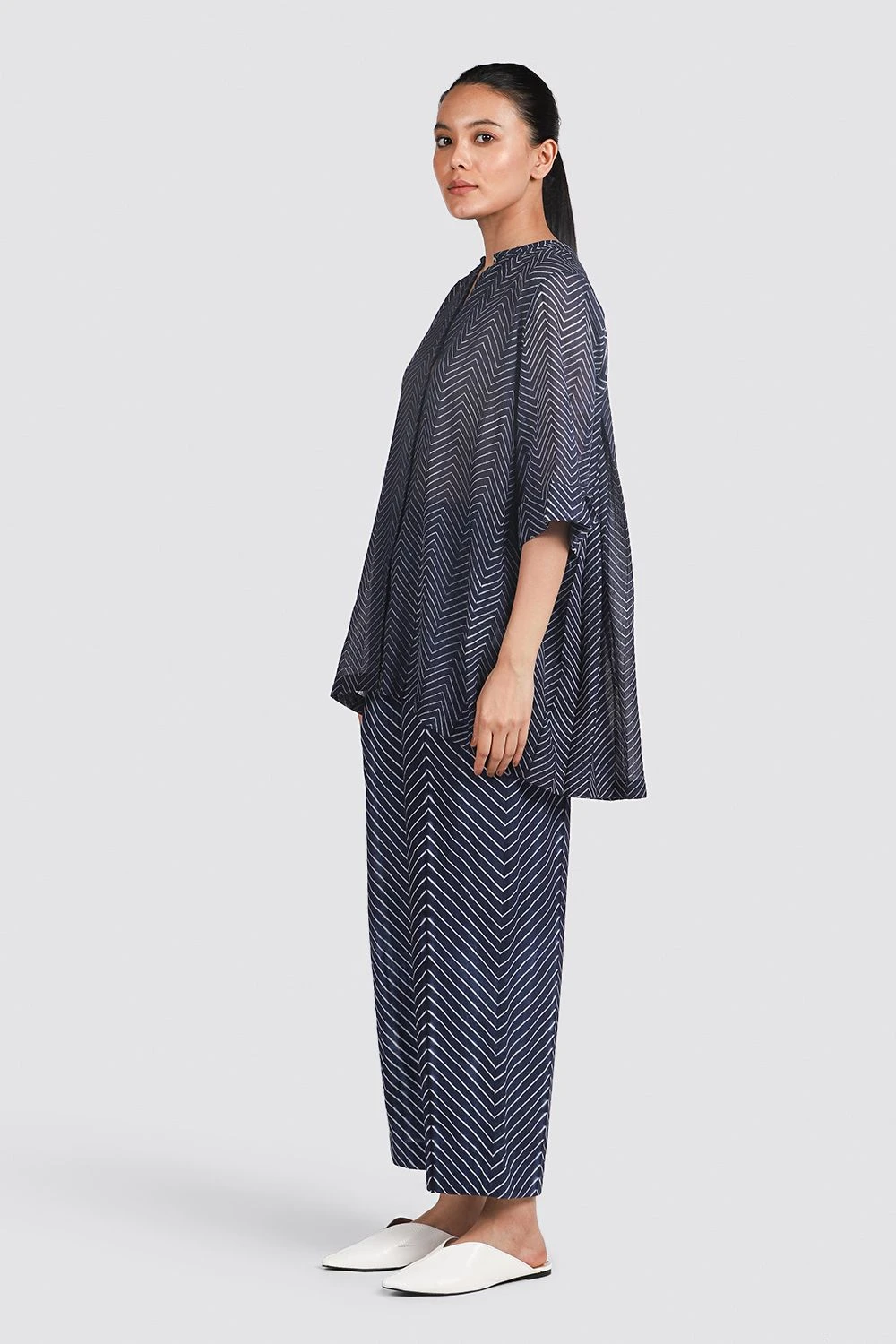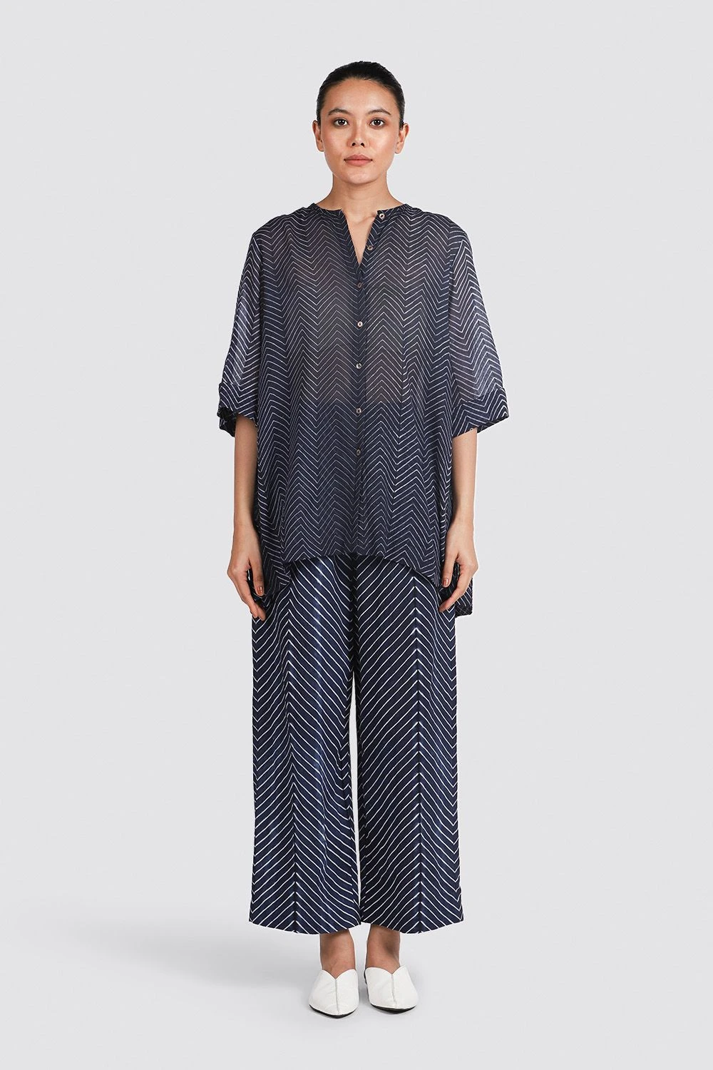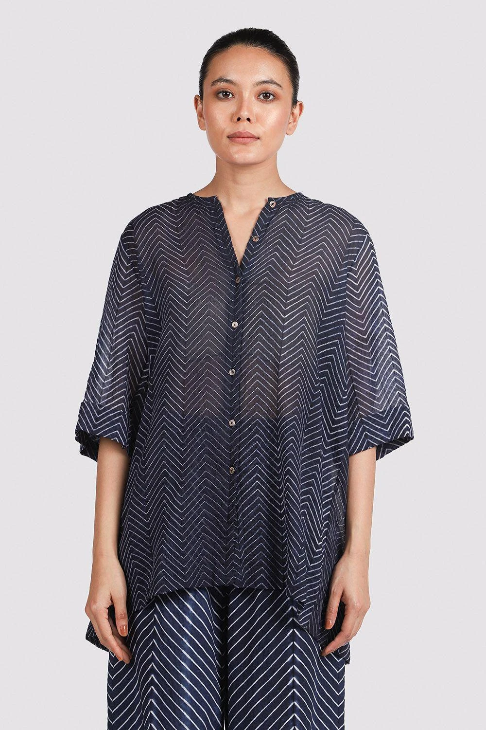 This back pleated shibori shirt is a great choice for semi-formal events. Dress it up with a pair of high waisted pants for that sophisticated look.