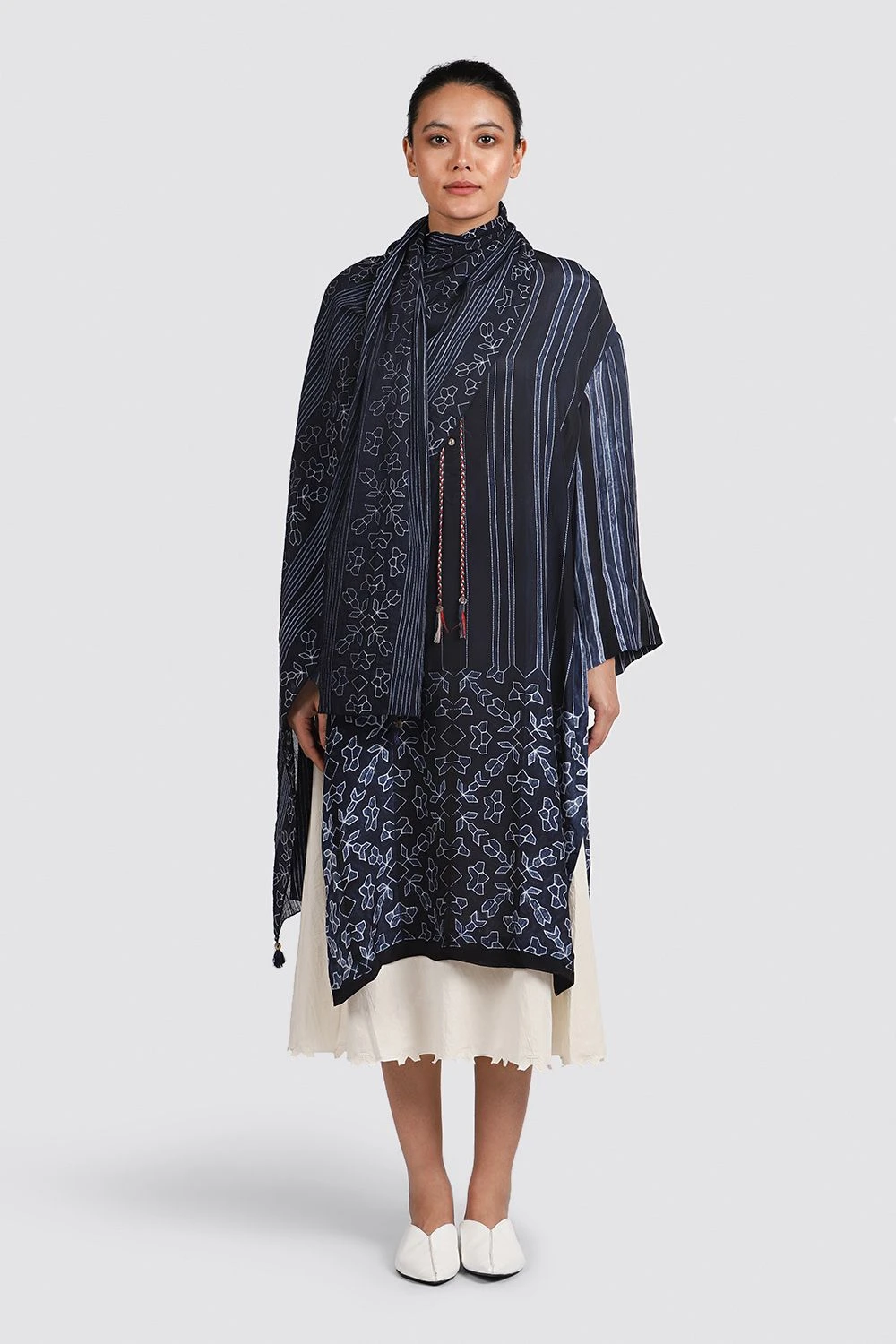 Calling all scarf lovers! This modern shibori textile scarf is a must-have accessory. It will be beautiful over a white shirt & blue jeans, a jacket or a long kurta for an evening out.