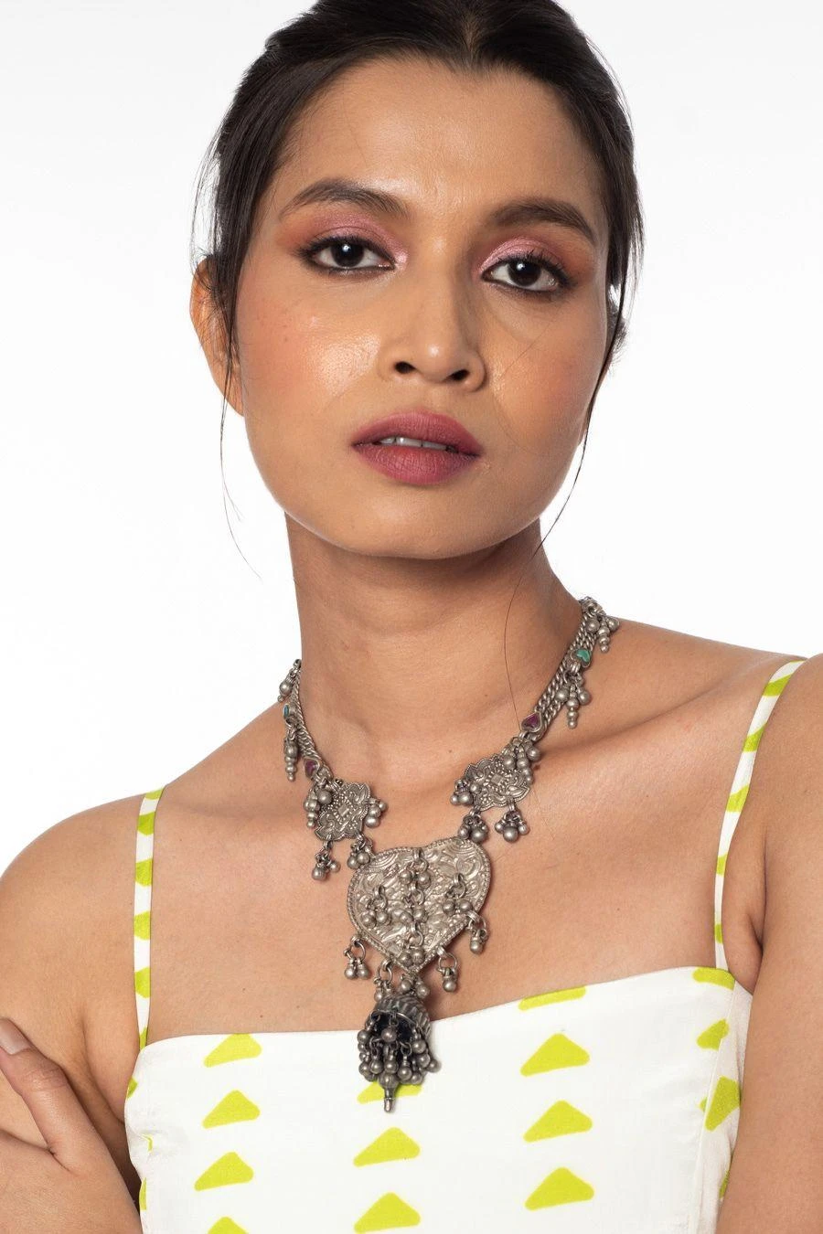 Spruce up youe festive looks with this silver layered necklace. Crafted in silver, the cut-work, frames, and moulds for this necklace are all meticulously designed by hand. Style them with both contemporary & Indian looks with equal ease.