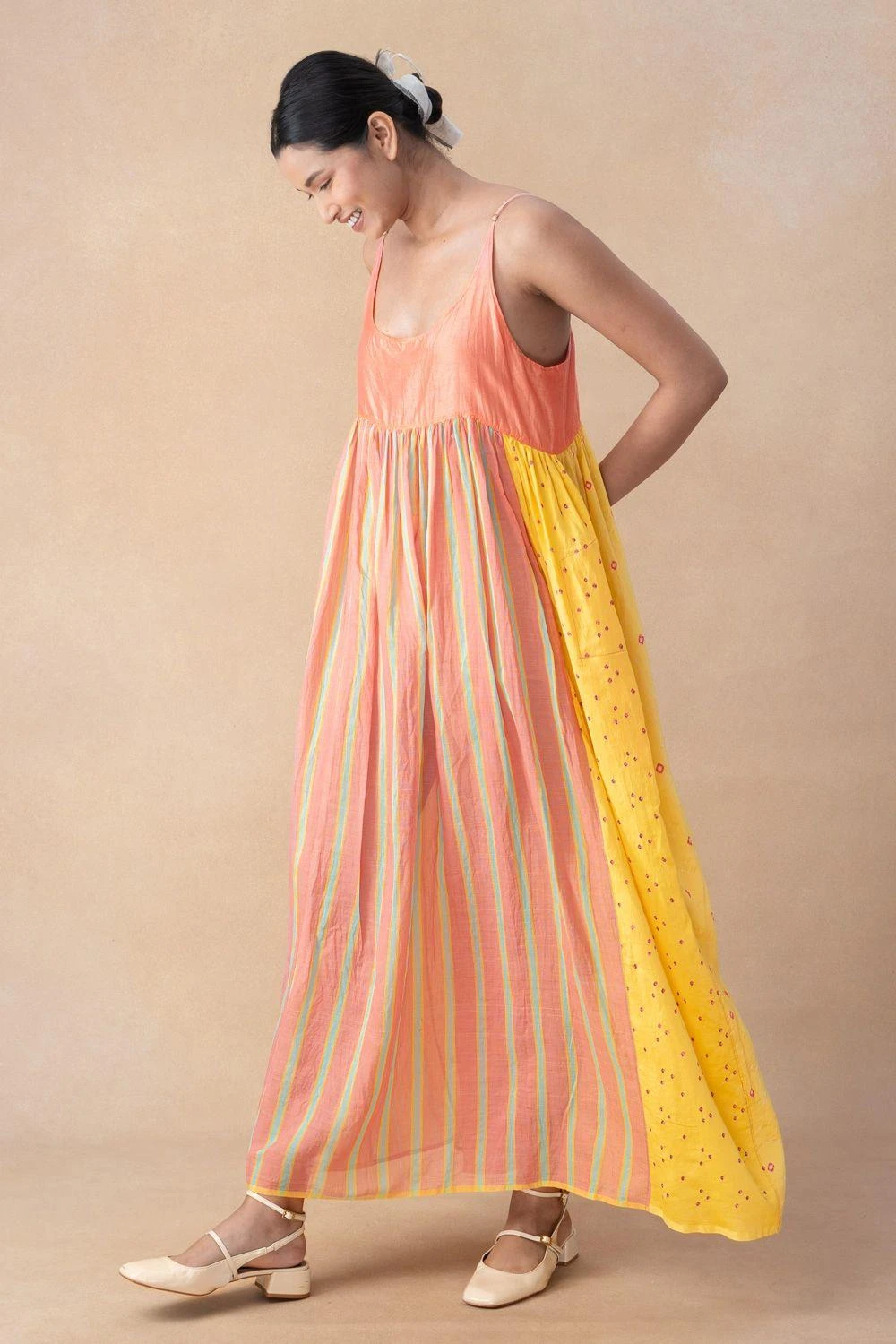 The epitome of understated elegance, this Bandhani Dress is a testament to the ancient art of bandhani, a resist dyeing process that has been passed down from generation to generation in India.