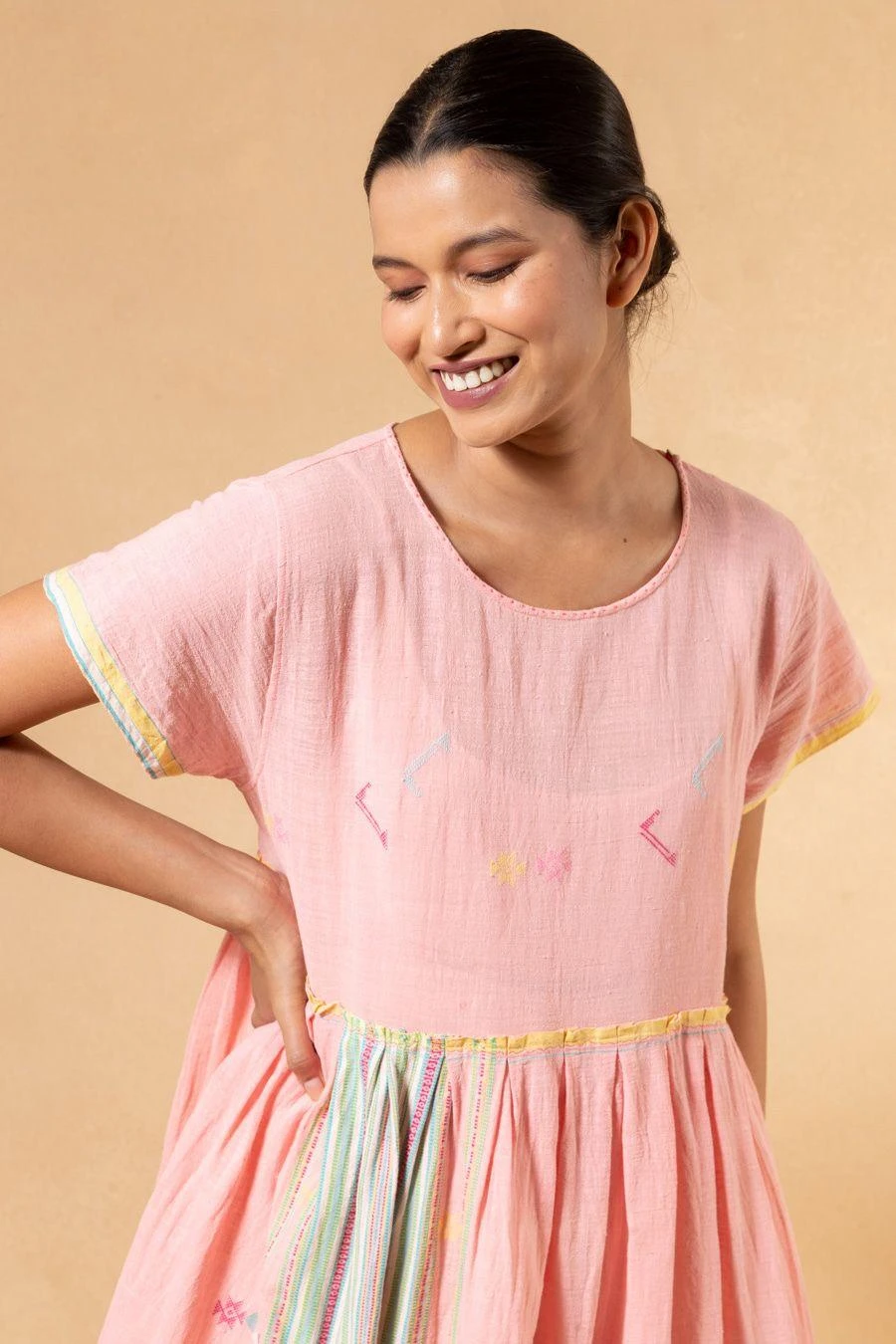 Handwoven from the finest quality cotton, this dress is a labour of love. Drawing inspiration from ancient textiles, Injiri weaves intricate design stories that highlight the unique codes of each region’s craftsmanship