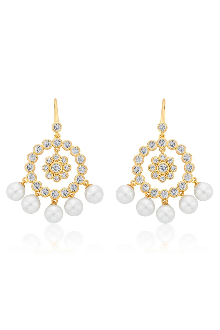 Indulge in the exquisite allure of Isharya’s handcrafted 18-karat gold-plated earrings, crafted from resplendent pearls and CZ that radiate a timeless elegance.