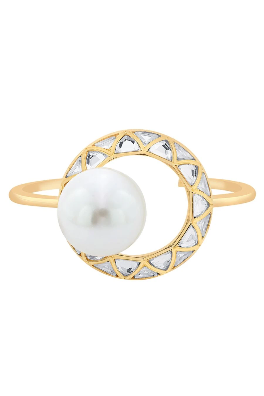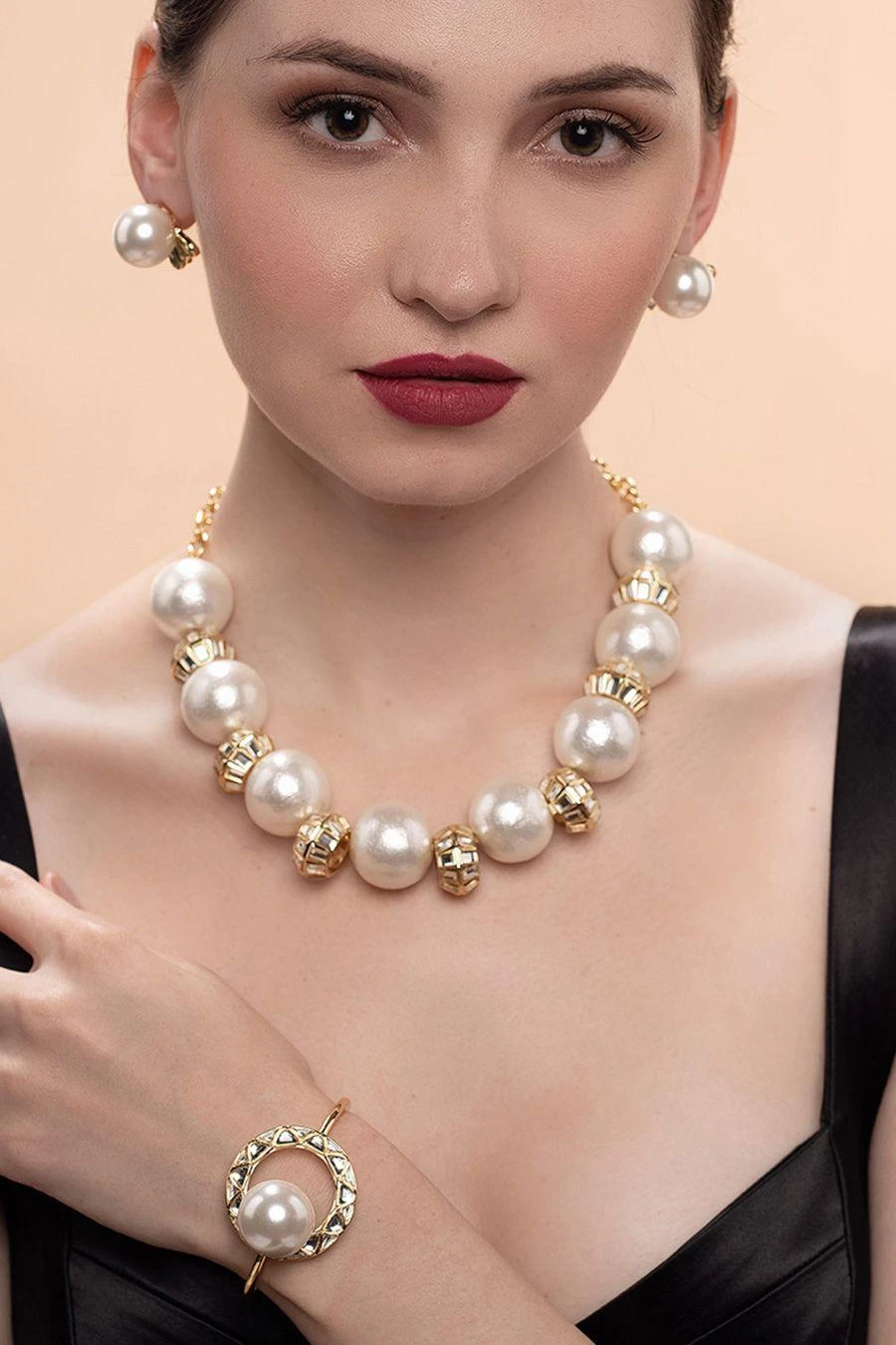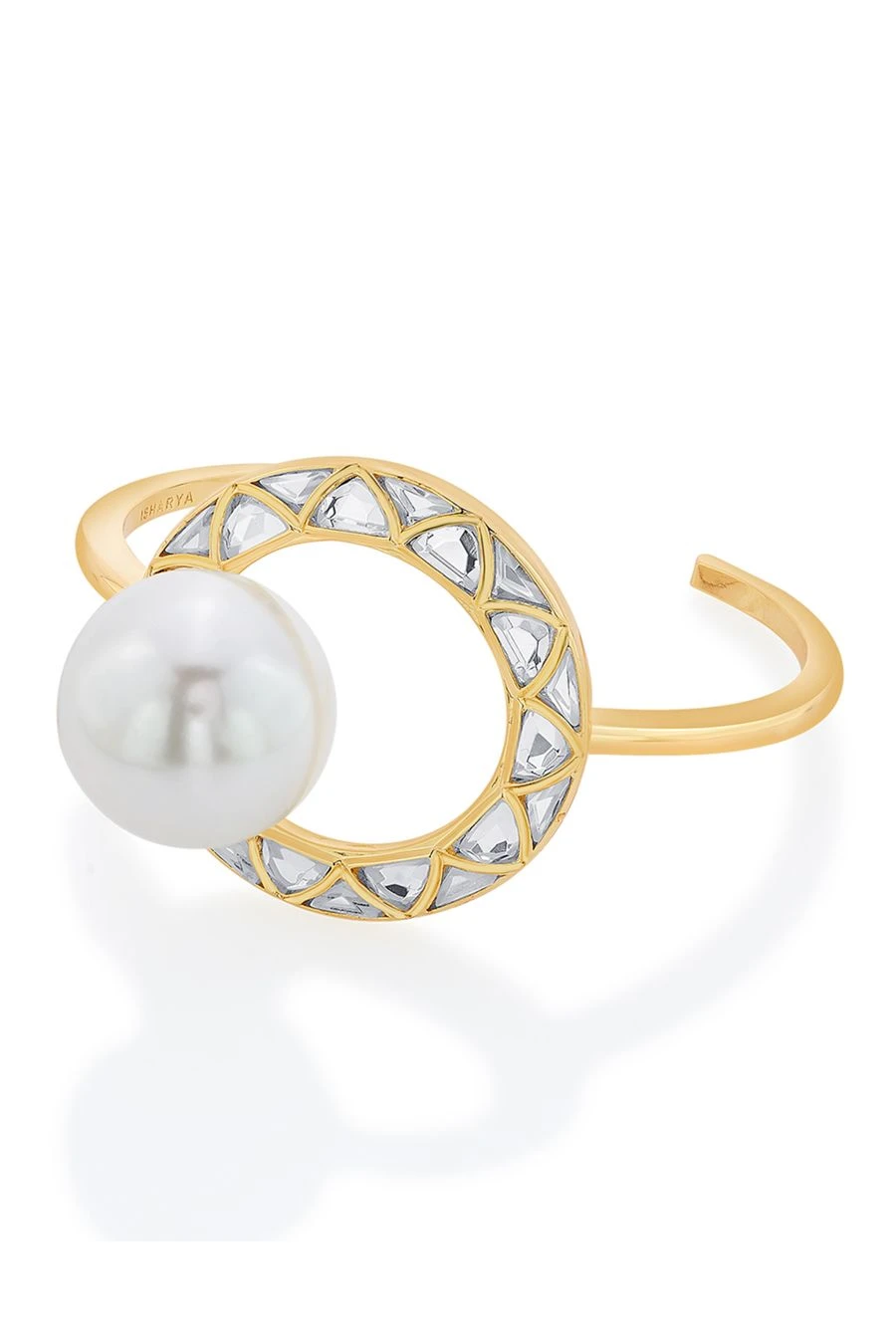 This cuff is a great accessory to add an instant edge to your looks. This Mughal-inspired cuff is designed with a motif, a statement pearl & Isharyas signature-cut mirrors. You can style them with both Indian & contemporary outfits with equal ease.