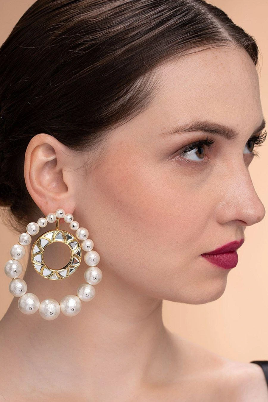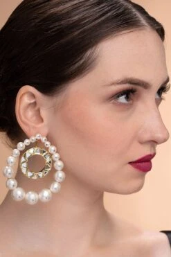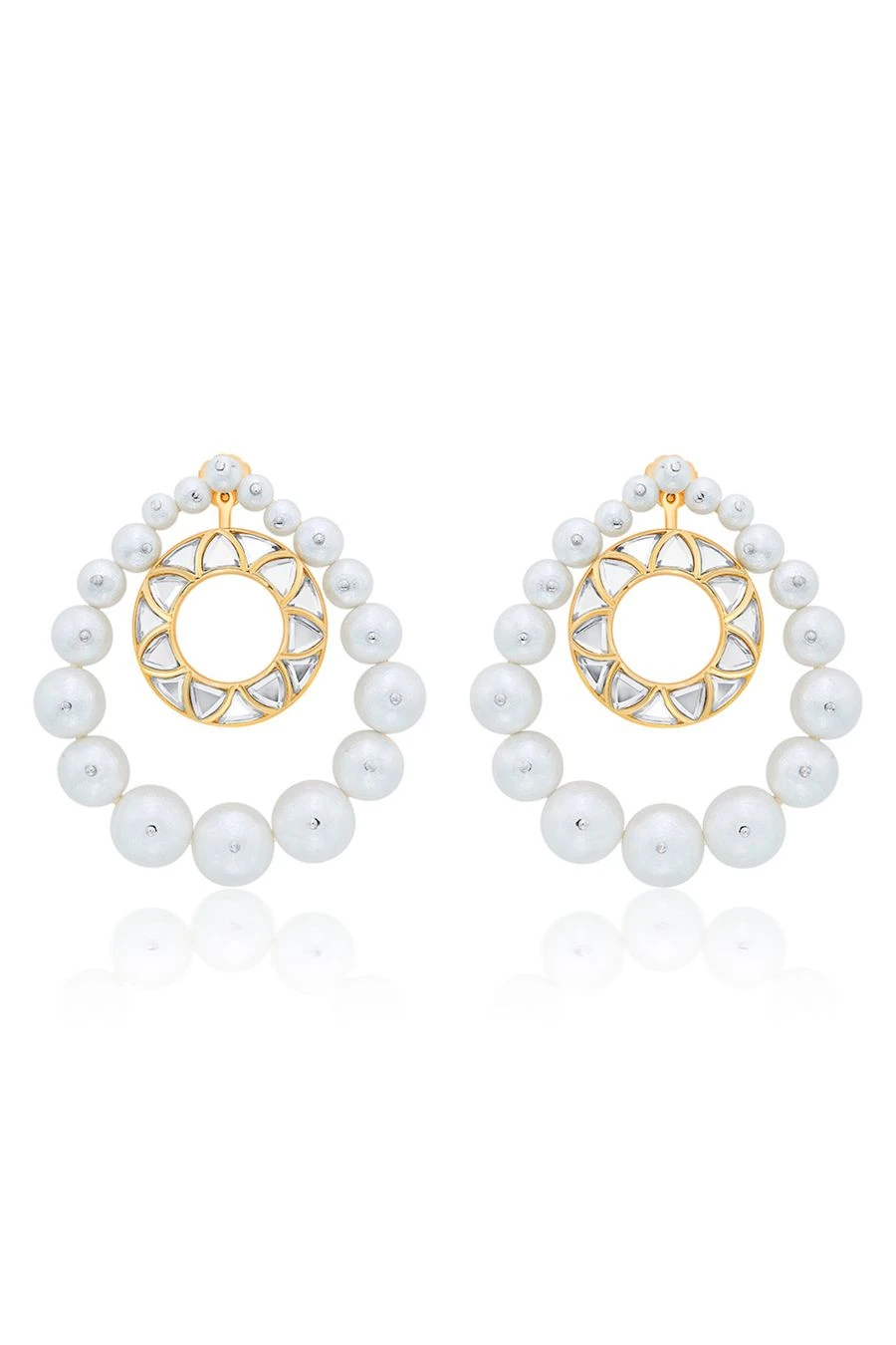 These Amara earrings are a great accessory to add an instant edge to your looks. A youthful spin on moonbalis, this pair melds timeless cotton ball pearls with hand-cut mirrors and 18-karat gold-plating.