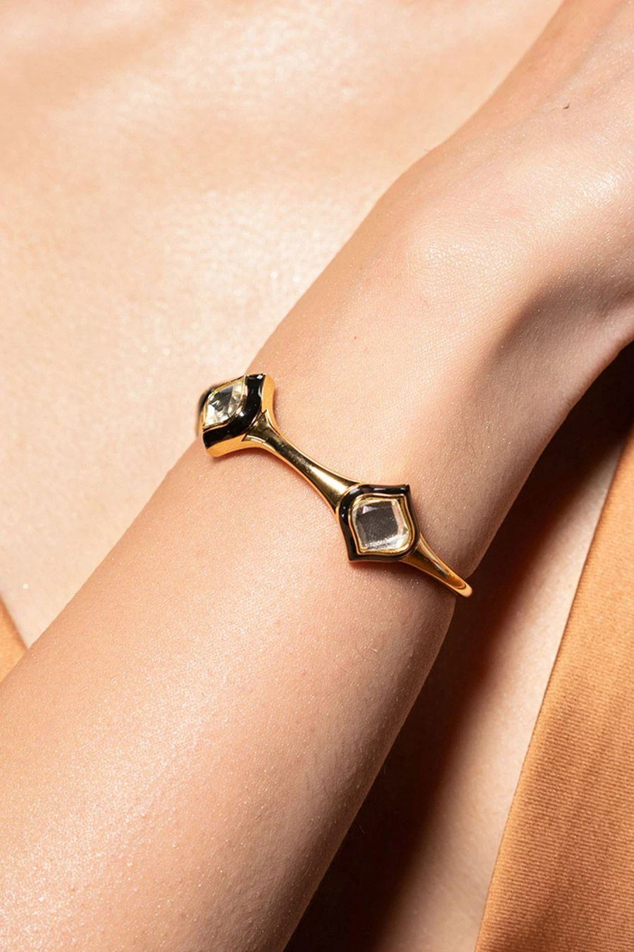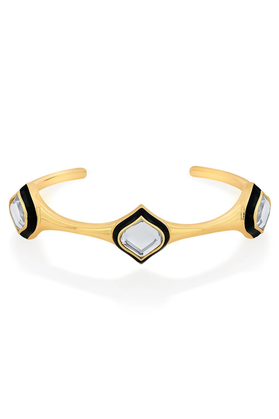 This Amina cuff is a great accessory to add an instant edge to your looks. It is shaped in an open cuff silhouette and encrusted with Isharya’s signature polki-cut mirrors.
