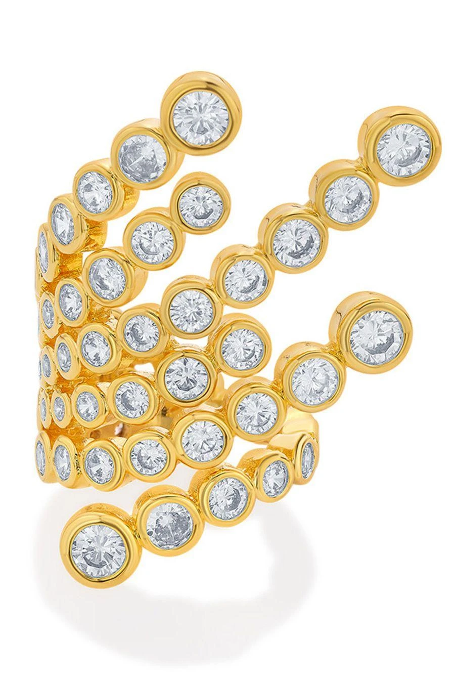 This ring is a great accessory to add an instant edge to your looks. This aura gold ring is crafted from sparkling CZ and 18-karat gold plating. You can style them with both Indian & contemporary looks with equal ease.