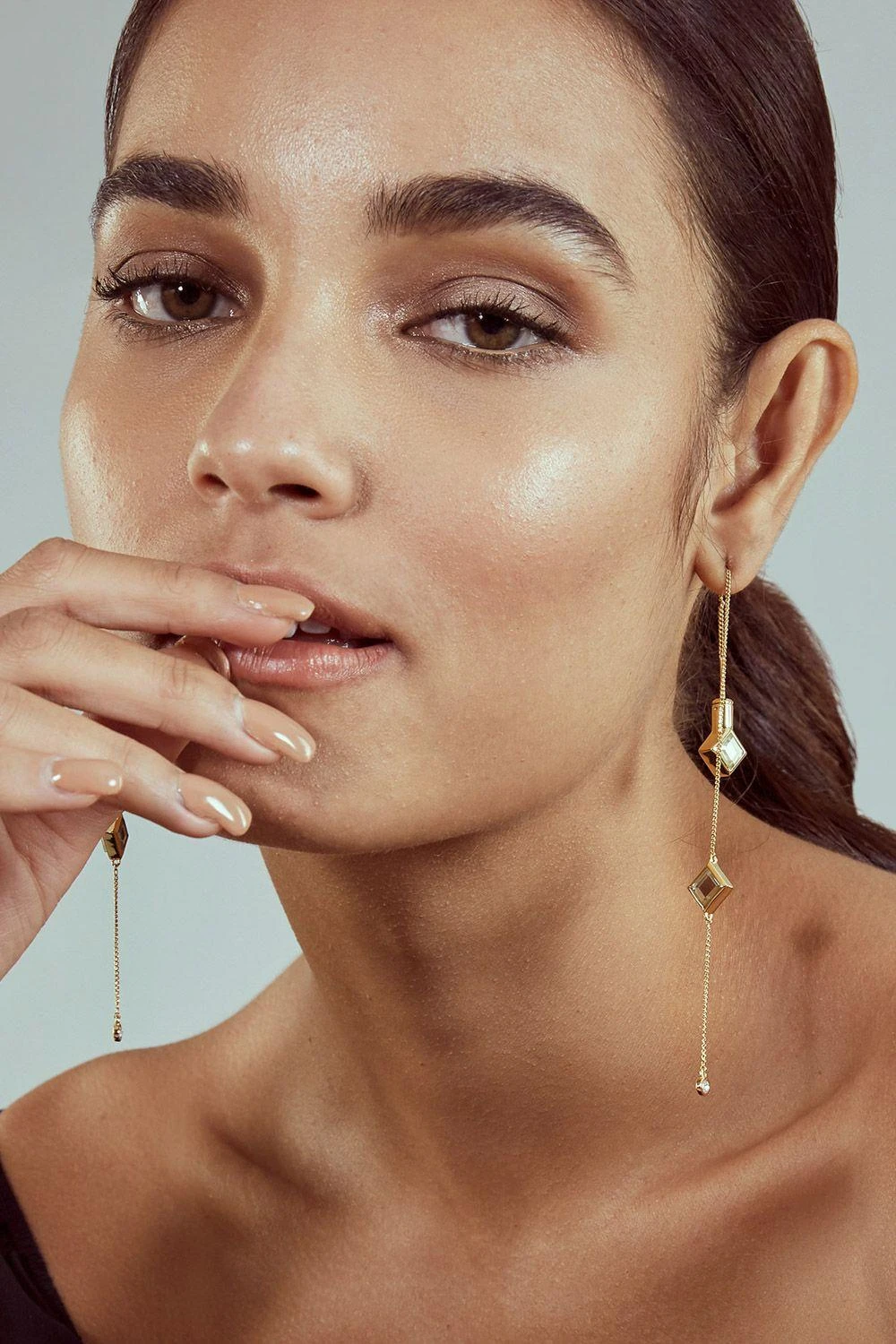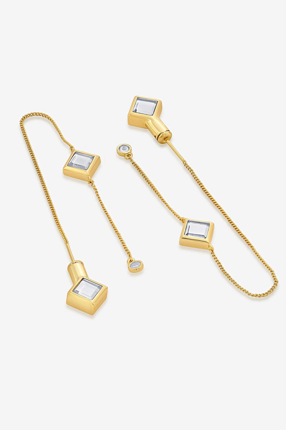 Enhance your elegance with these earrings. The combination of mirrors & diamonds creates a captivating design that catches the light from every angle. These earrings are the epitome of refined sophistication, adding a touch of glamour to any outfit.