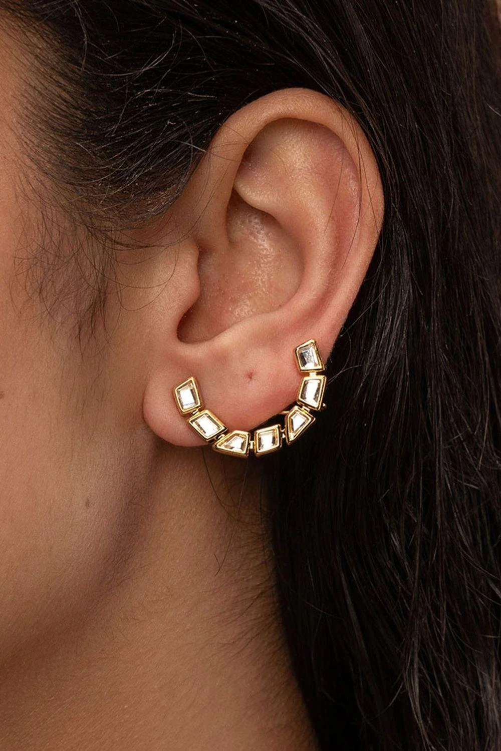 Refine your style with Nuit Mirror Crescent Ear Cuffs. Fashioned from premium mirror and 18Kt gold plating, these earrings boast a sleek crescent design, radiating a luxurious allure. Embrace them as a mark of confidence, style, and sophistication.
