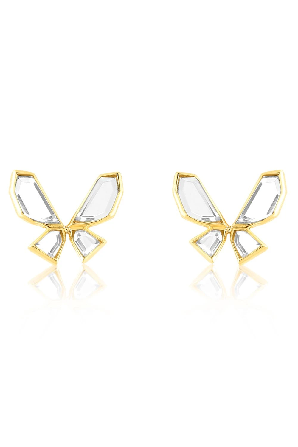 Adorn elegance with these elegant Butterfly Mirror & 18Kt Gold Plated studs. Perfect for a chic bun and a touch of your favored lipstickùan exquisite pairing to amplify your allure, turning every moment into a canvas of sophisticated style.