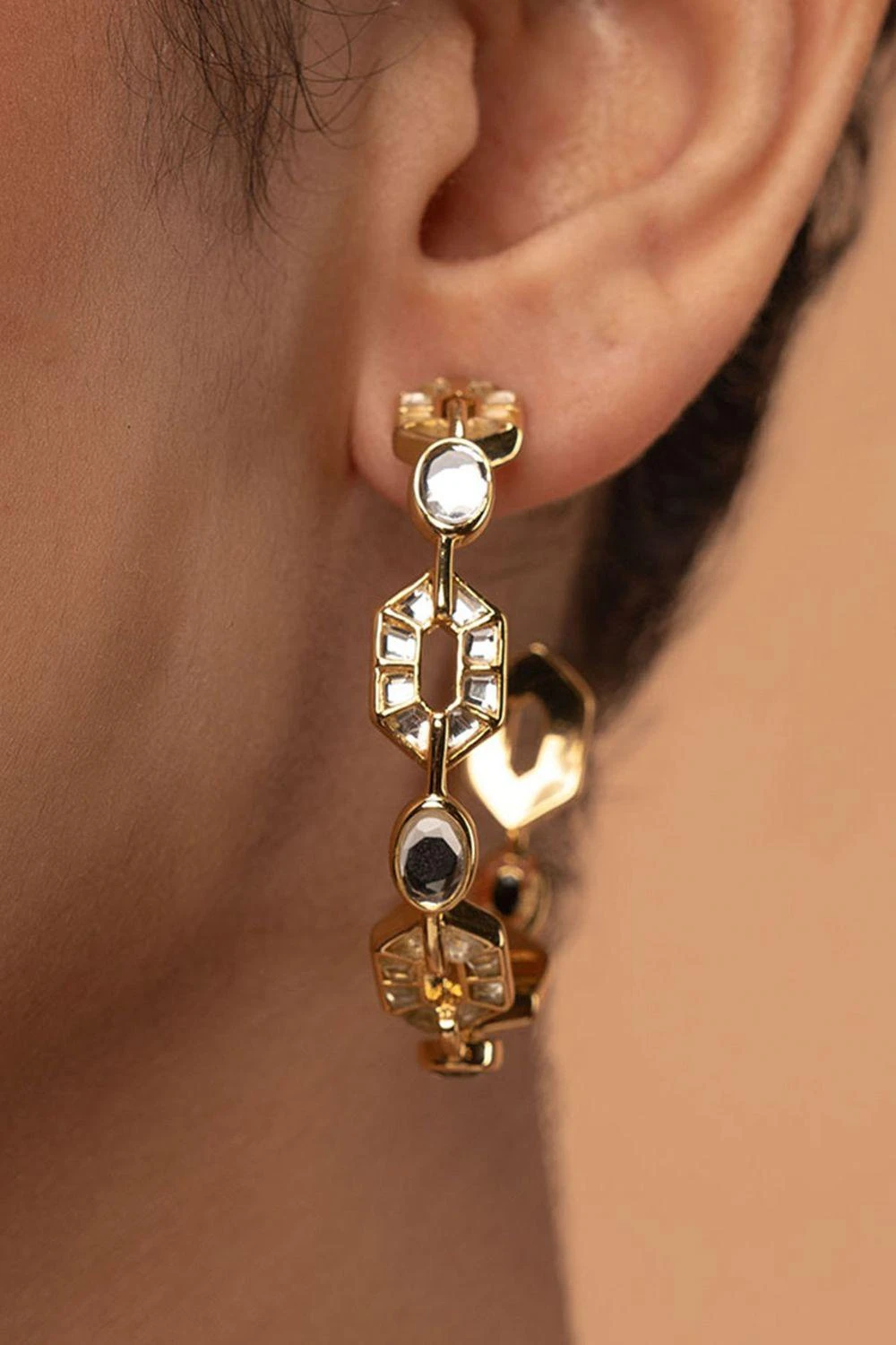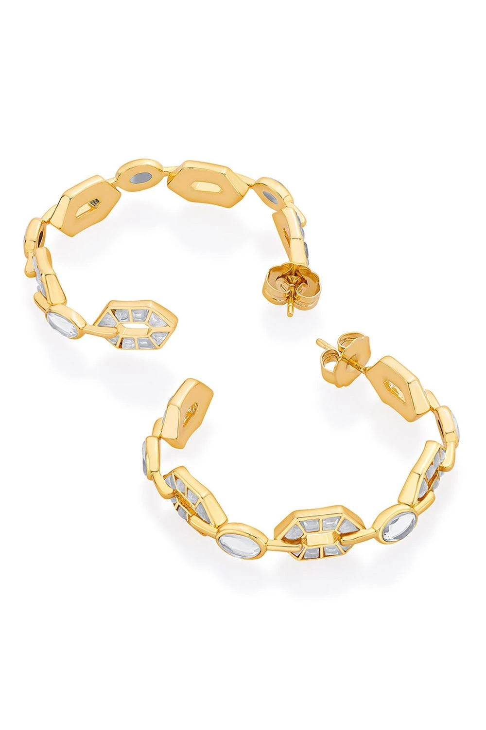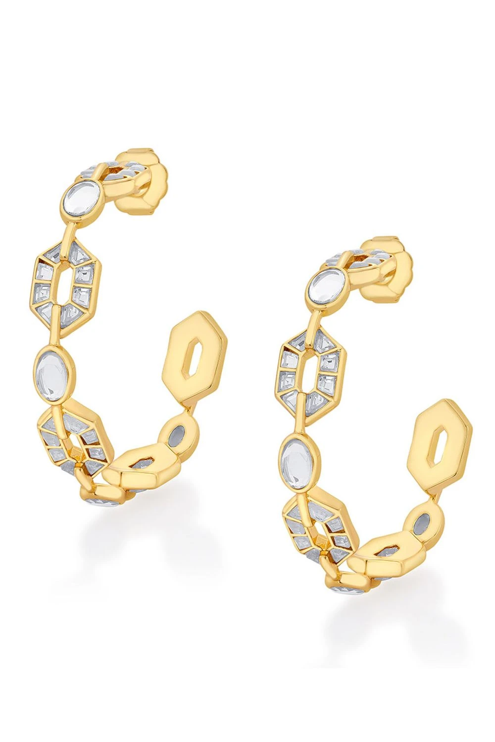Command attention with Glimmer Mirror Hoop Earrings with exquisite 18Kt gold plating, soirÃ’e-perfect, radiant brilliance.