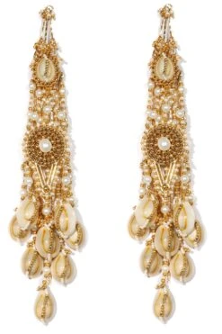 These Zeenat earrings are a great accessory to add an instant edge to your looks. These 18-karat gold-plated earrings are encrusted with pearls in the shape of a beautiful harp.