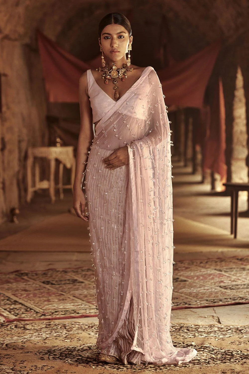 Material/Fabric : Sari: silk organza & crepe, blouse: raw silk