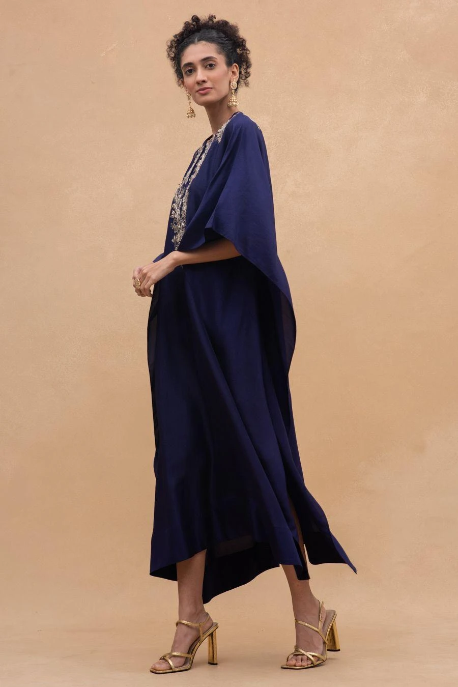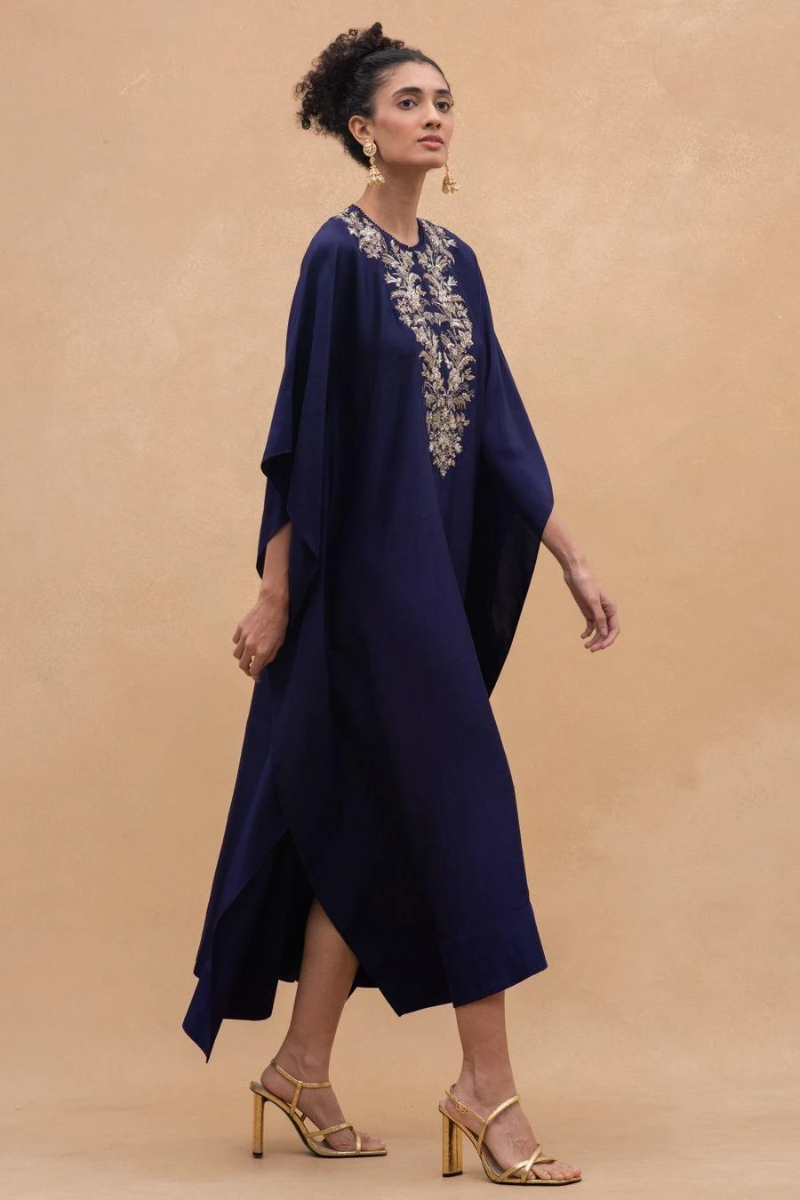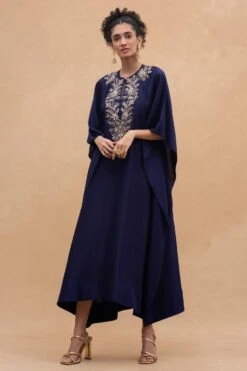 The perfect amalgamation of style & comfort, this purple embroidered kaftan is the perfect festive wear to go from day to evening with ease. It is cut in silk dupion & adorned with intricate zardosi embroidery.