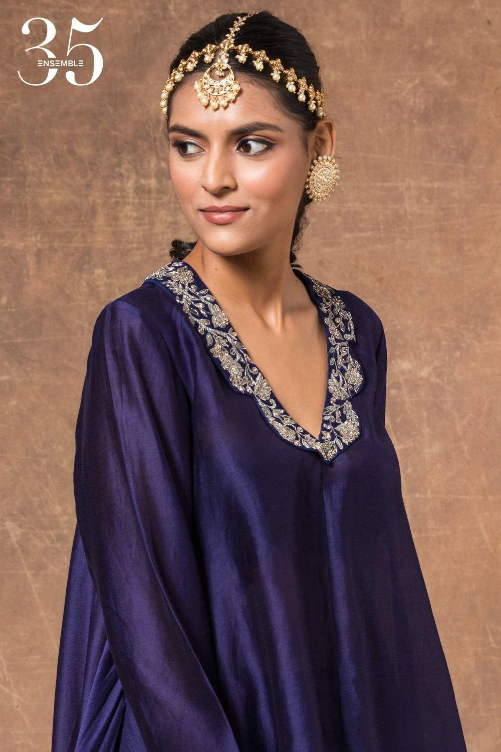A yearlong celebration of its 35th anniversary telling the story of modern Indian fashion. This purple co-ord set is just what you need to add a fresh spin to your festive closet. It features a collar embroidered high-low tunic & dhoti pants.