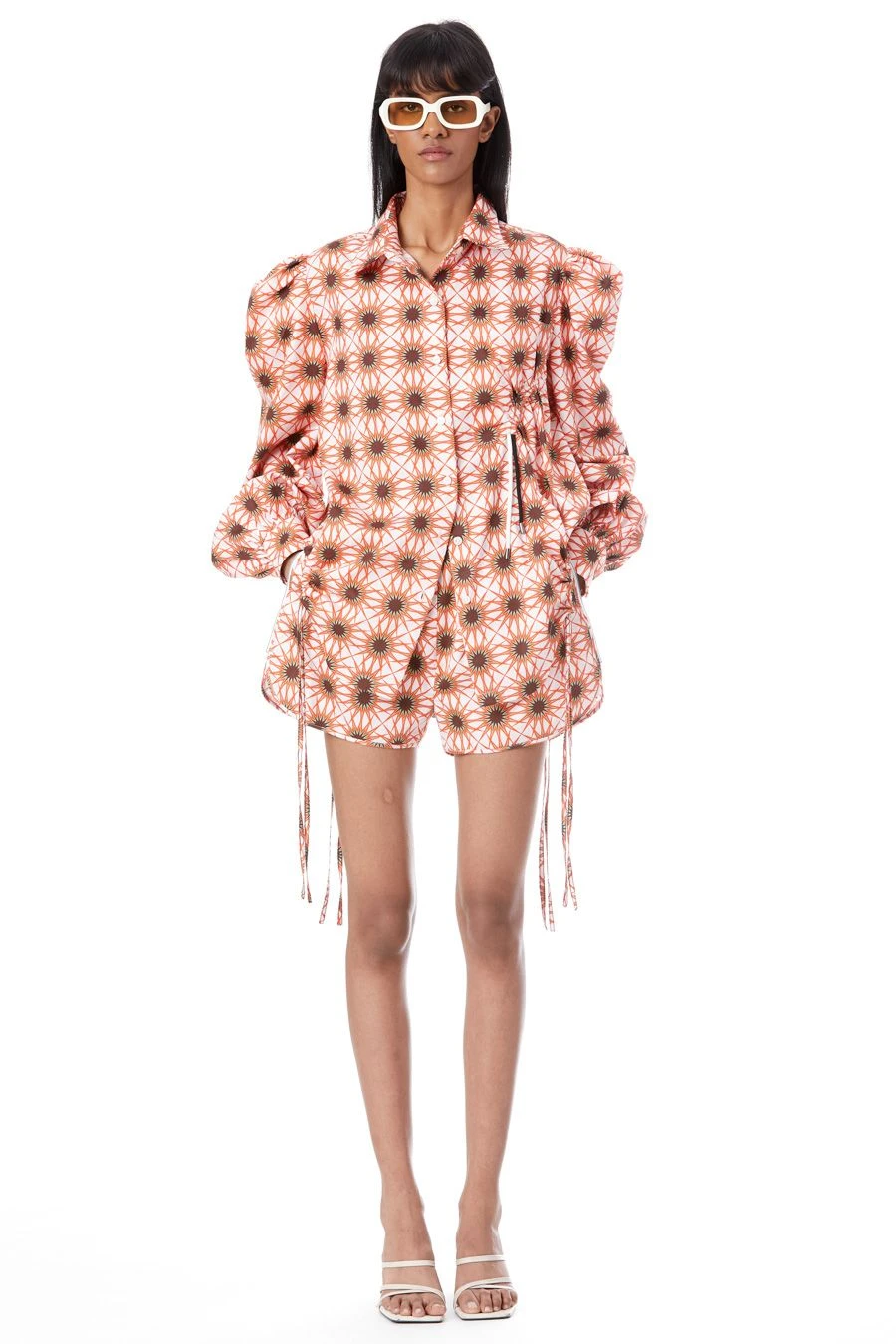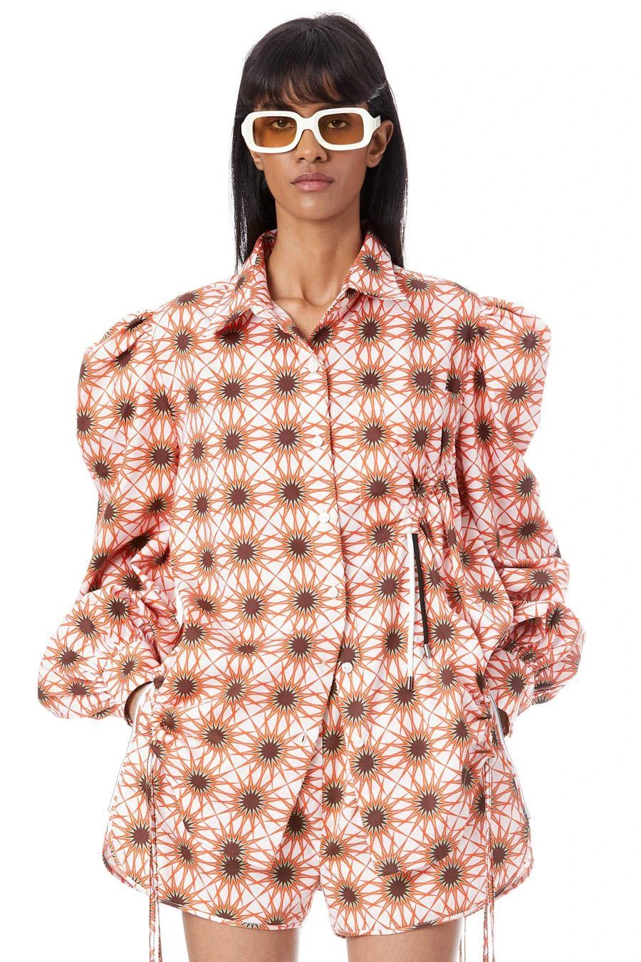 Look sartorially savvy with this co-ord set. Crafted in cotton, this set features a printed puff sleeved shirt paired with shorts with a semi elasticated waist.
