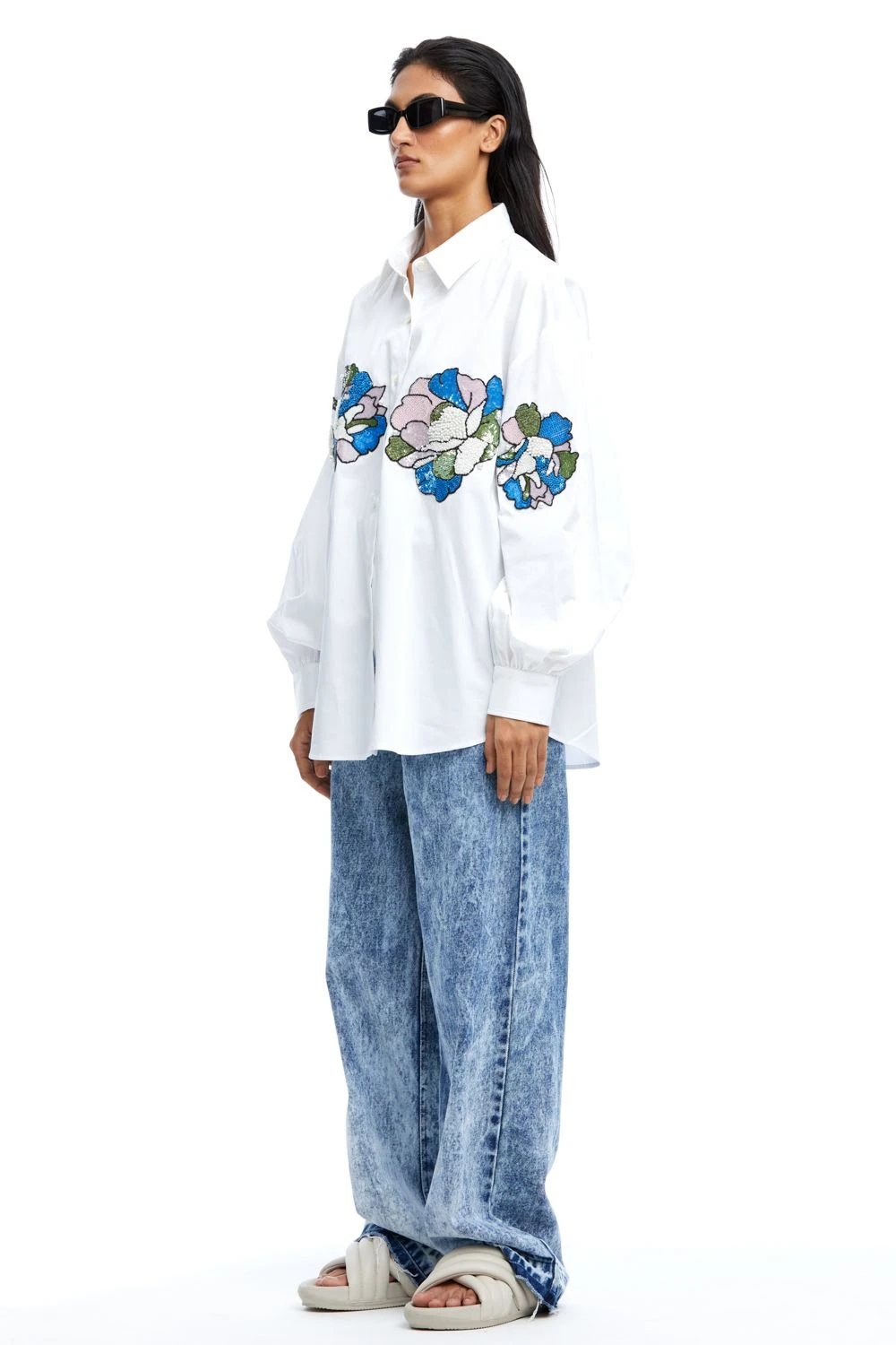 Elevate your style with this Hand-Embellished Shirt. Crafted with precision, this shirt merges elegance and artistry, reflecting a sophisticated charm that’s perfect for any occasion.