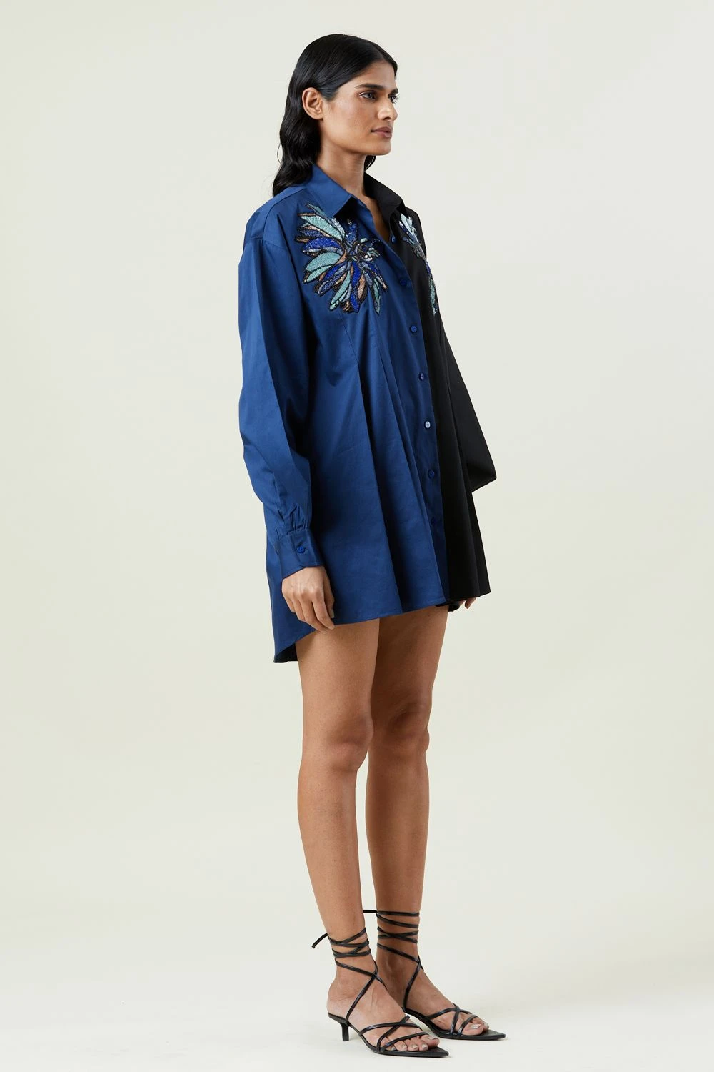 Experience elegance in this Two-Toned Hand-Embellished Shirt. A harmonious blend of craftsmanship and style, adorned with intricate details and pleating, it’s a timeless piece that redefines sophistication.