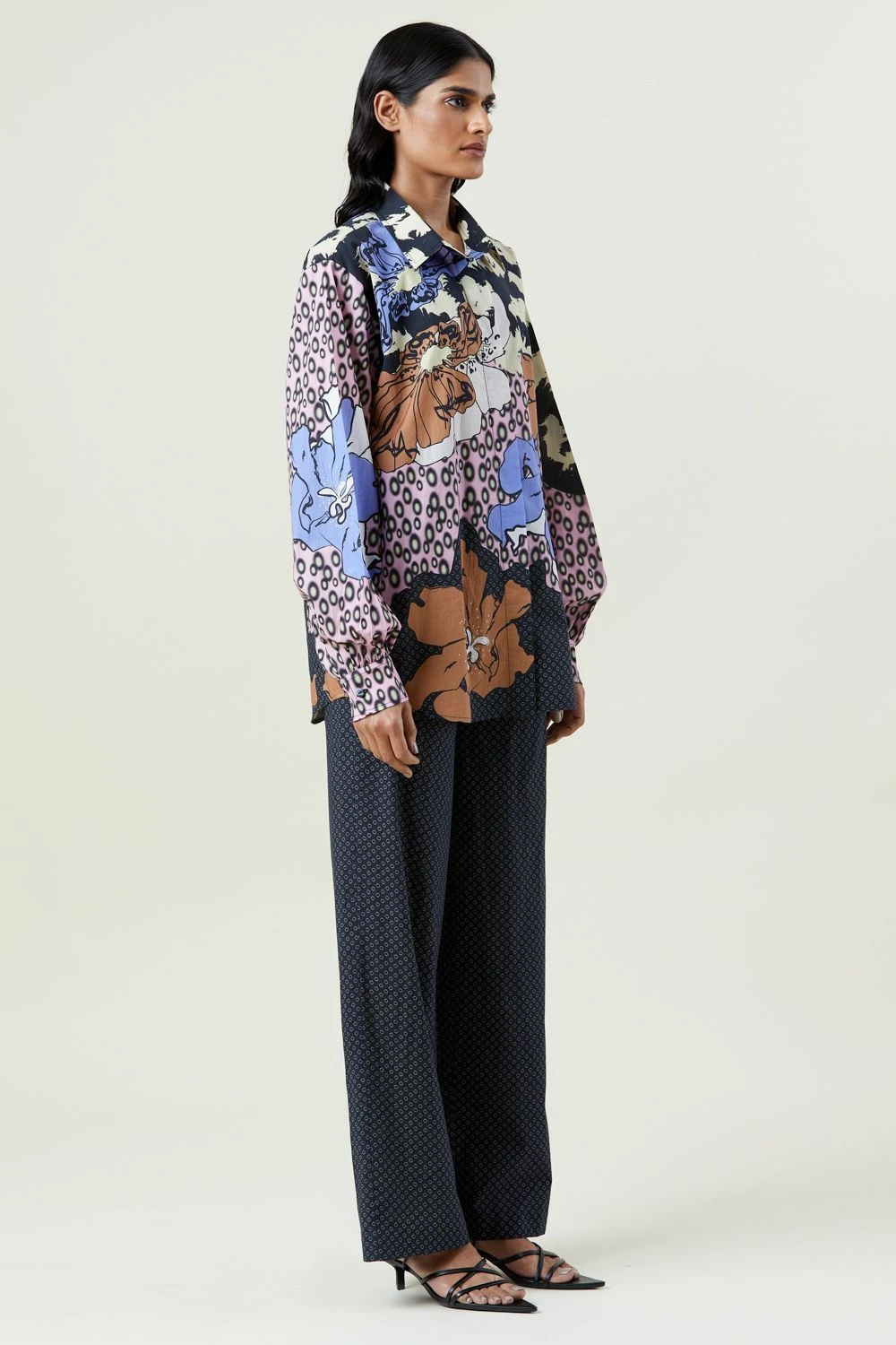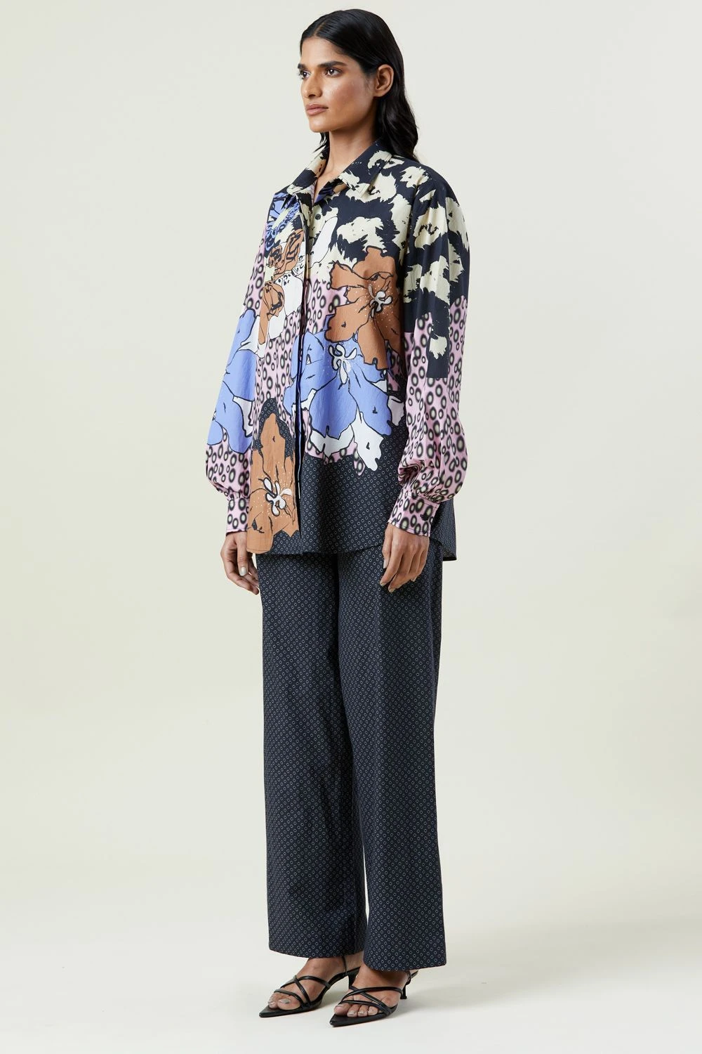 Indulge in opulence with this Multicoloured engineered print co-ord set. Each piece is a masterpiece, adorned with meticulous detailing, offering an ensemble that effortlessly captures sophistication and style.