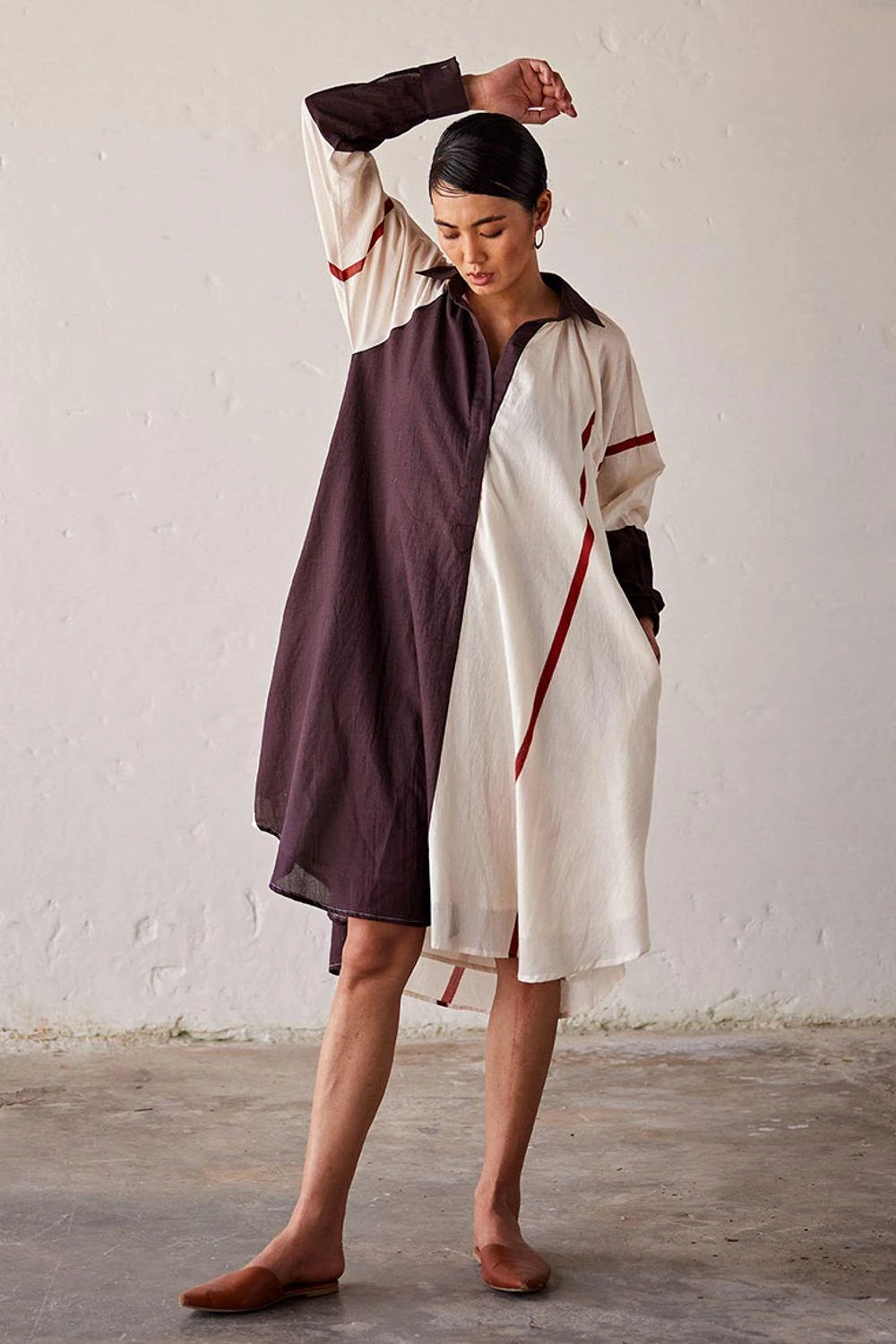 Indulge in understated elegance with this off-white and grey mul shirt dress. Adorned by a classic shirt collar, front button opening, and buttoned cuff sleeve openings, it’s a symbol of timeless sophistication and versatile style.